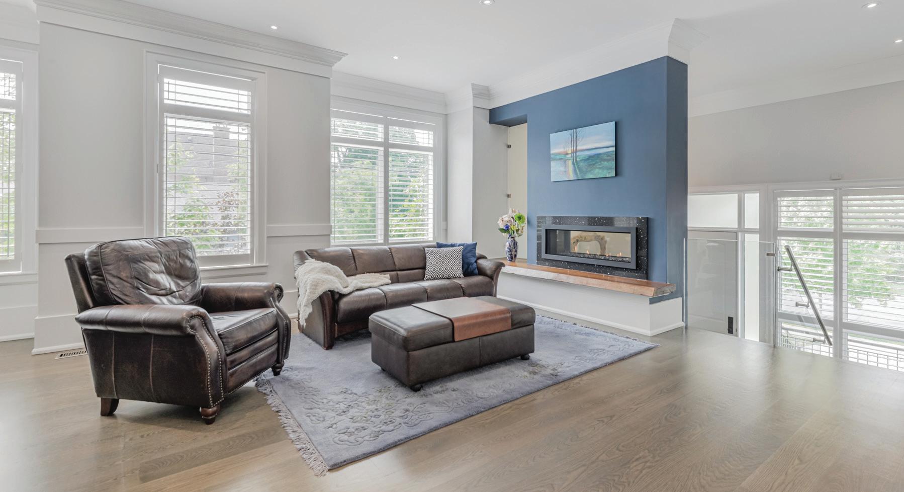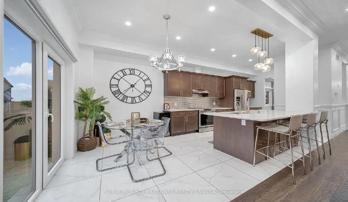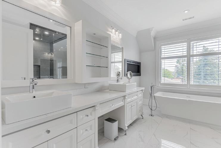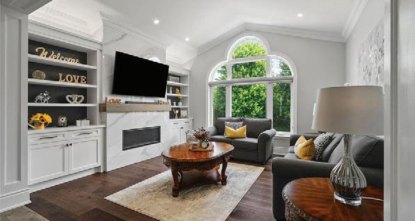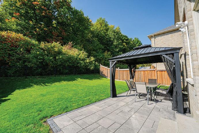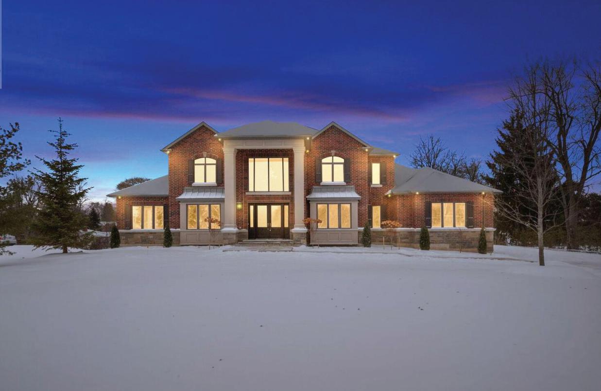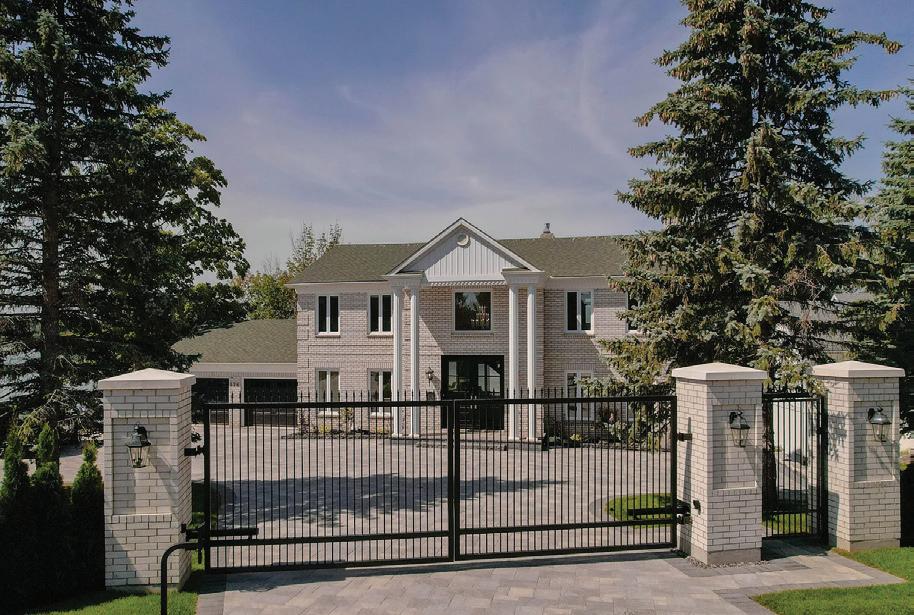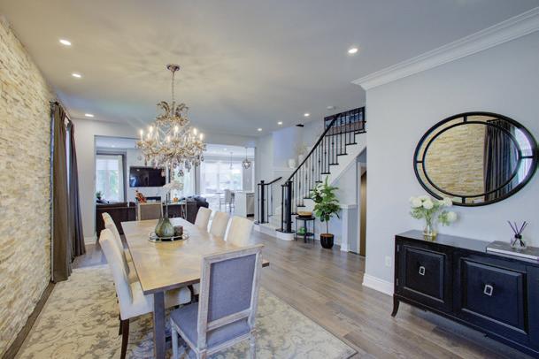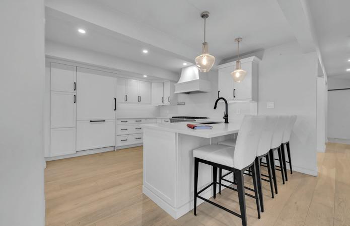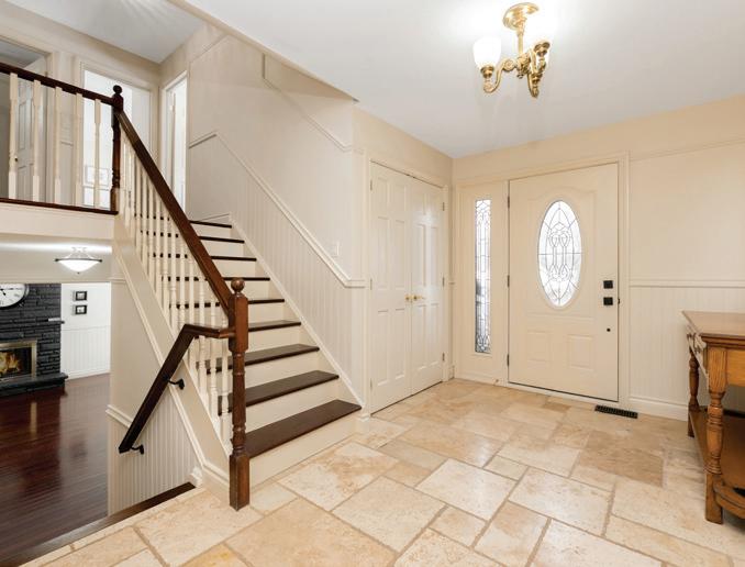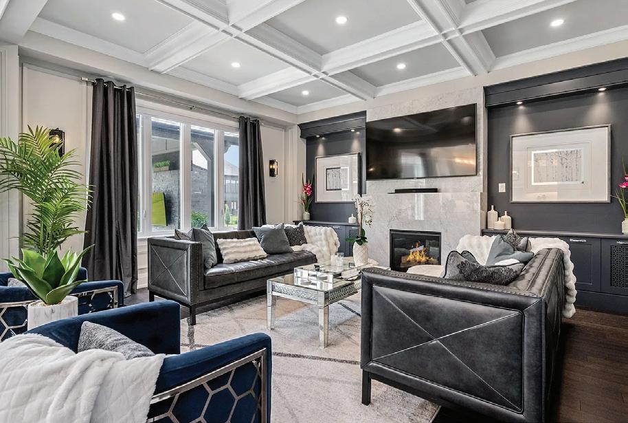 Completely reimagined luxury bungalow offering over 4,800 sq ft of refined living space on a premium landscaped lot in one of Woodbridges most desirable enclaves. No detail has been overlooked in this topto-bottom transformation. The exterior showcases a natural stone facade with tiger stripe accents, 9 custom insulated garage doors, upgraded black gutters and fascia with LED pot lights, a new roof (2017), and oversized high-efficiency windows (2020). The grounds have been professionally landscaped w herringbone stone walkways, granite coping steps, mature trees, front and rear sprinkler system w Wi-Fi controls, night vision security cameras, uplighting, and a massive rear patio with matching stone design, speaker rough-ins, and EVready garage with secondary panel. Step inside to soaring ceilings, oversized porcelain foyer tile, a custom white oak staircase with glass railing, Astoria walnut engineered hardwood, solid wood/glass interior doors, oversized baseboards, and over 100 LED pot lights. Savant smart automation connects lighting, blinds, and speakers throughout. The brand new Italian-imported Scavolini kitchen features quartz counters, waterfall island, fluted glass-panel cabinetry, JenAir built-in appliances, LED undercabinet lighting, dining room with custom built-in buffet and 65 smart TV. The family room boasts a 72 three-sided porcelain fireplace, home theatre wiring, and oak detailing, while the office offers 11 vaulted ceilings, built-ins, and power blinds. The primary suite includes expanded windows, stone fireplace, automated blinds, integrated speakers, and a spa-inspired ensuite with custom vanity, fluted tub, oversized tile, and LED accents. The fully finished lower level offers an entertainers dream with a projector, Dolby 7.1 surround sound, modern dry bar, real brick feature walls, new powder room, storage, and a 2-bedroom in-law suite with separate entrance, brand new kitchen, bath, and laundry central vac, Nest system, 200AMP service,