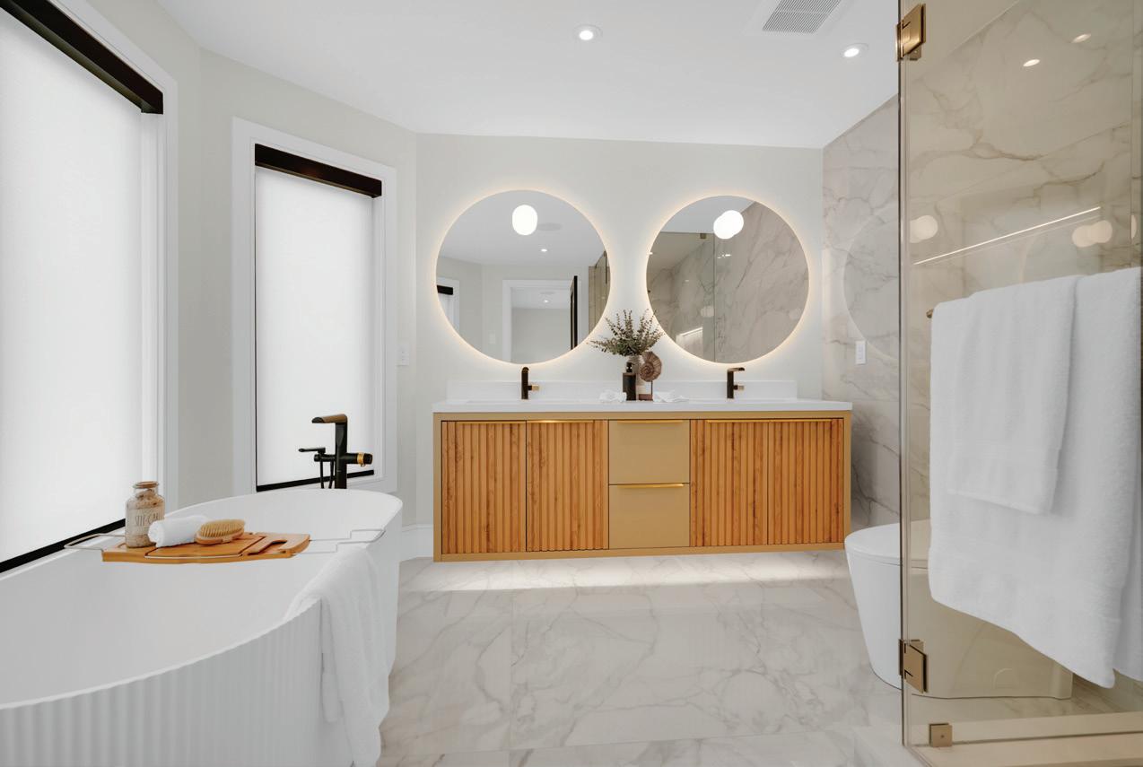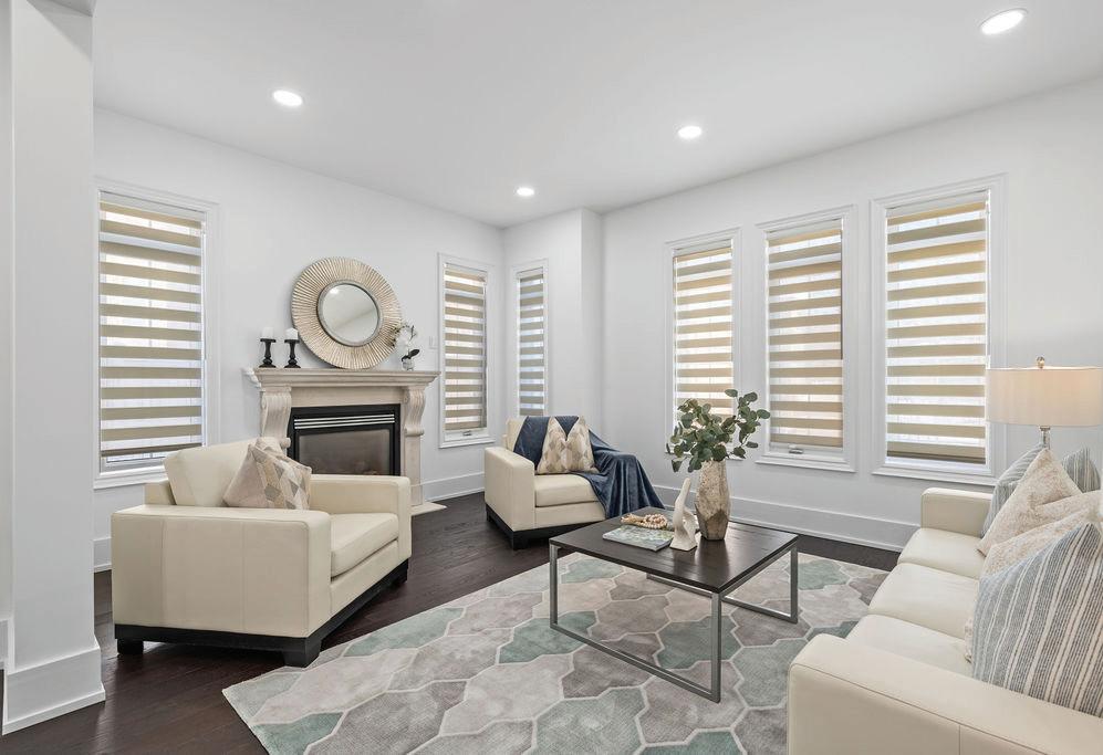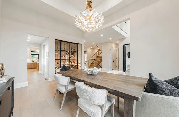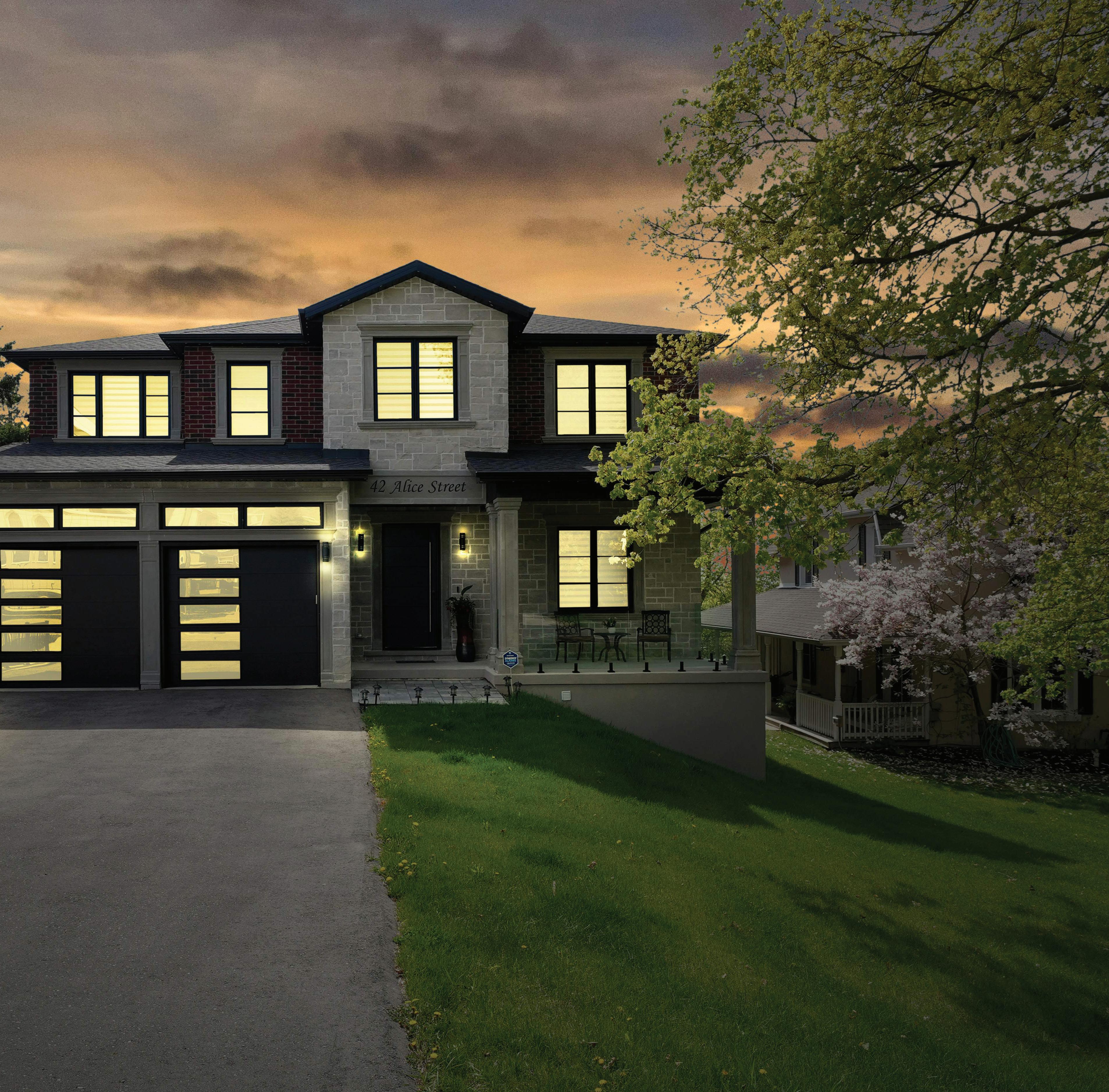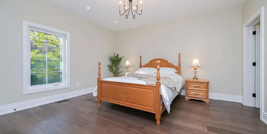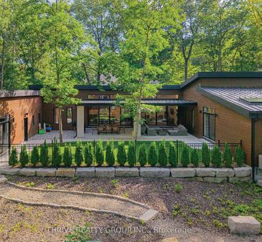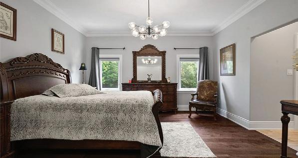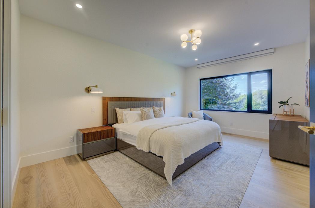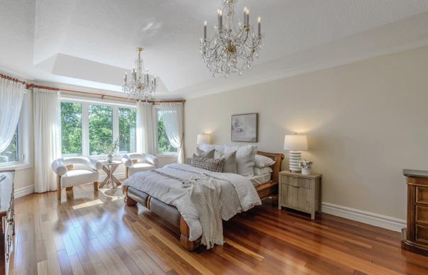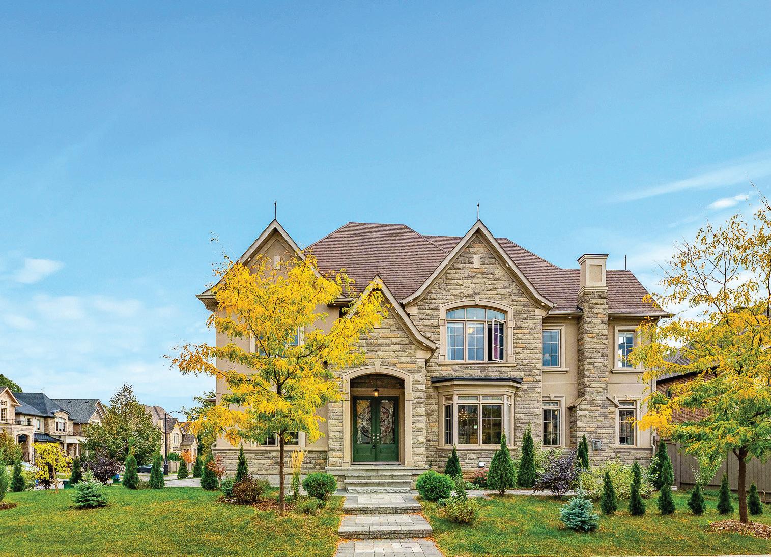 Completely reimagined luxury bungalow offering over 4,800 sq ft of refined living space on a premium landscaped lot in one of Woodbridges most desirable enclaves. No detail has been overlooked in this topto-bottom transformation. The exterior showcases a natural stone facade with tiger stripe accents, 9 custom insulated garage doors, upgraded black gutters and fascia with LED pot lights, a new roof (2017), and oversized high-efficiency windows (2020). The grounds have been professionally landscaped w herringbone stone walkways, granite coping steps, mature trees, front and rear sprinkler system w Wi-Fi controls, night vision security cameras, uplighting, and a massive rear patio with matching stone design, speaker rough-ins, and EVready garage with secondary panel. Step inside to soaring ceilings, oversized porcelain foyer tile, a custom white oak staircase with glass railing, Astoria walnut engineered hardwood, solid wood/glass interior doors, oversized baseboards, and over 100 LED pot lights. Savant smart automation connects lighting, blinds, and speakers throughout. The brand new Italian-imported Scavolini kitchen features quartz counters, waterfall island, fluted glass-panel cabinetry, JenAir built-in appliances, LED undercabinet lighting, dining room with custom built-in buffet and 65 smart TV. The family room boasts a 72 three-sided porcelain fireplace, home theatre wiring, and oak detailing, while the office offers 11 vaulted ceilings, built-ins, and power blinds. The primary suite includes expanded windows, stone fireplace, automated blinds, integrated speakers, and a spa-inspired ensuite with custom vanity, fluted tub, oversized tile, and LED accents. The fully finished lower level offers an entertainers dream with a projector, Dolby 7.1 surround sound, modern dry bar, real brick feature walls, new powder room, storage, and a 2-bedroom in-law suite with separate entrance, brand new kitchen, bath, and laundry central vac, Nest system, 200AMP service,