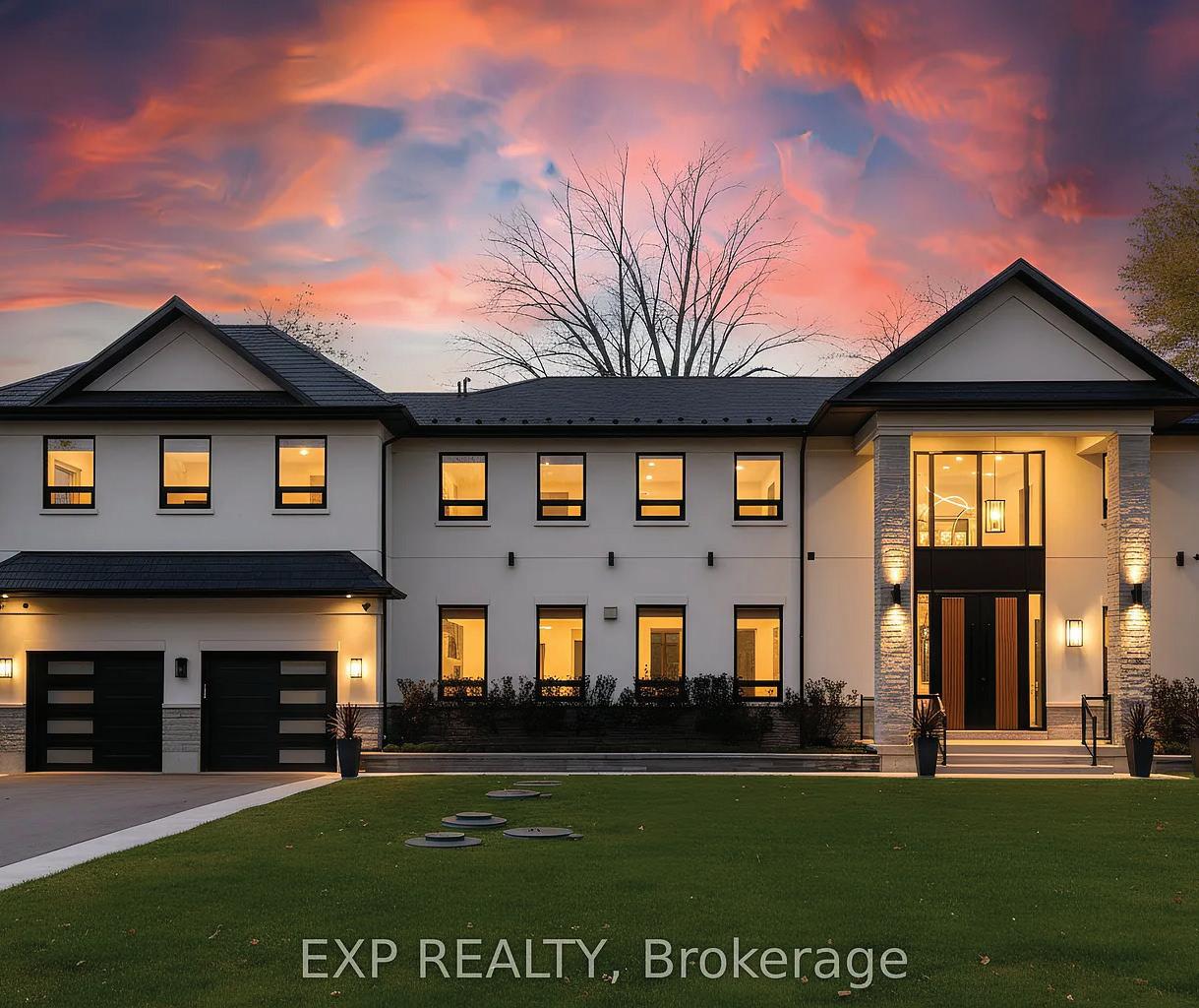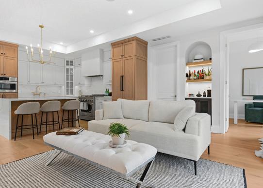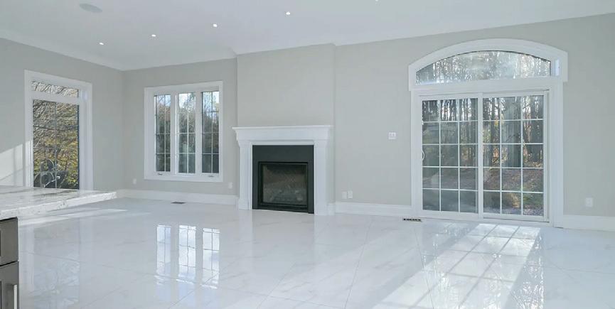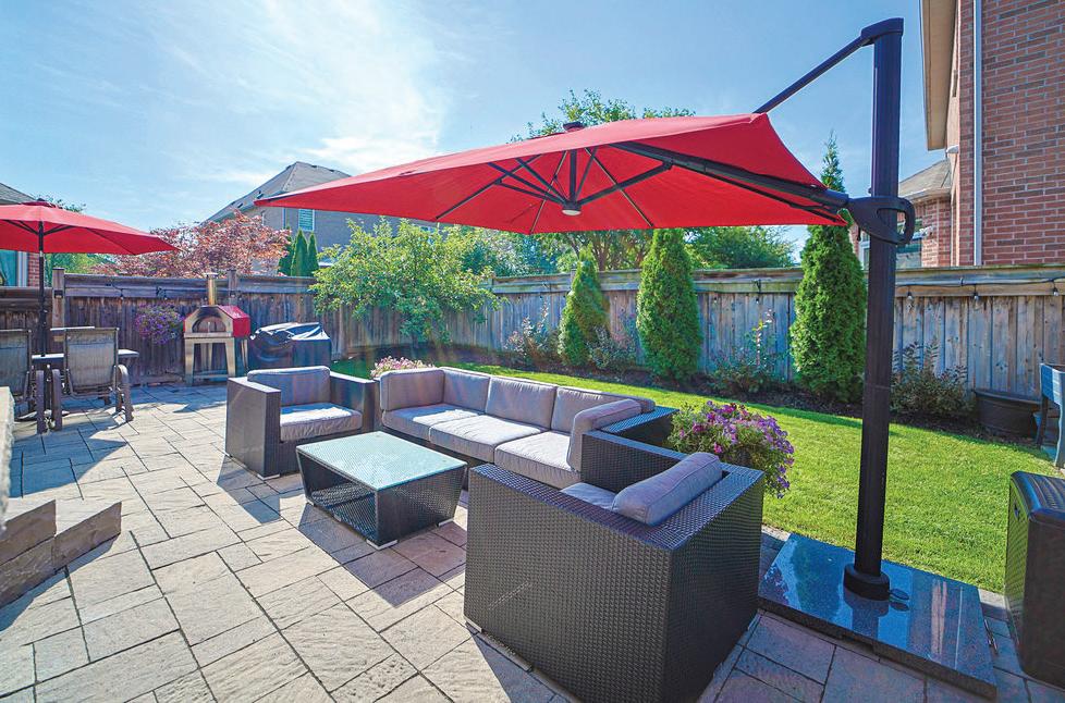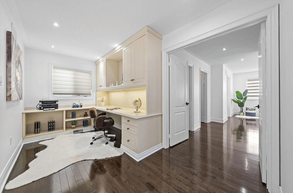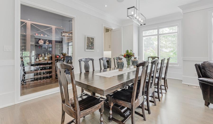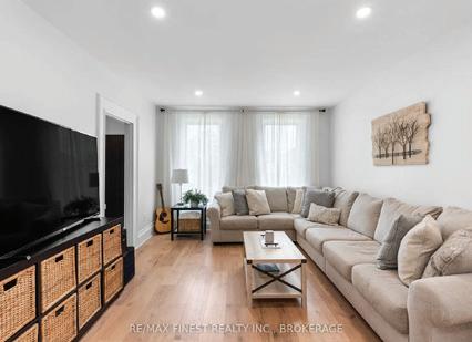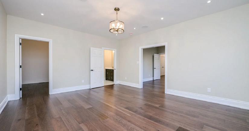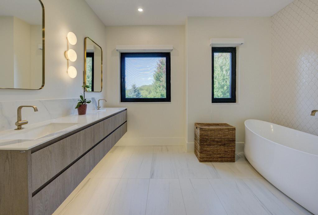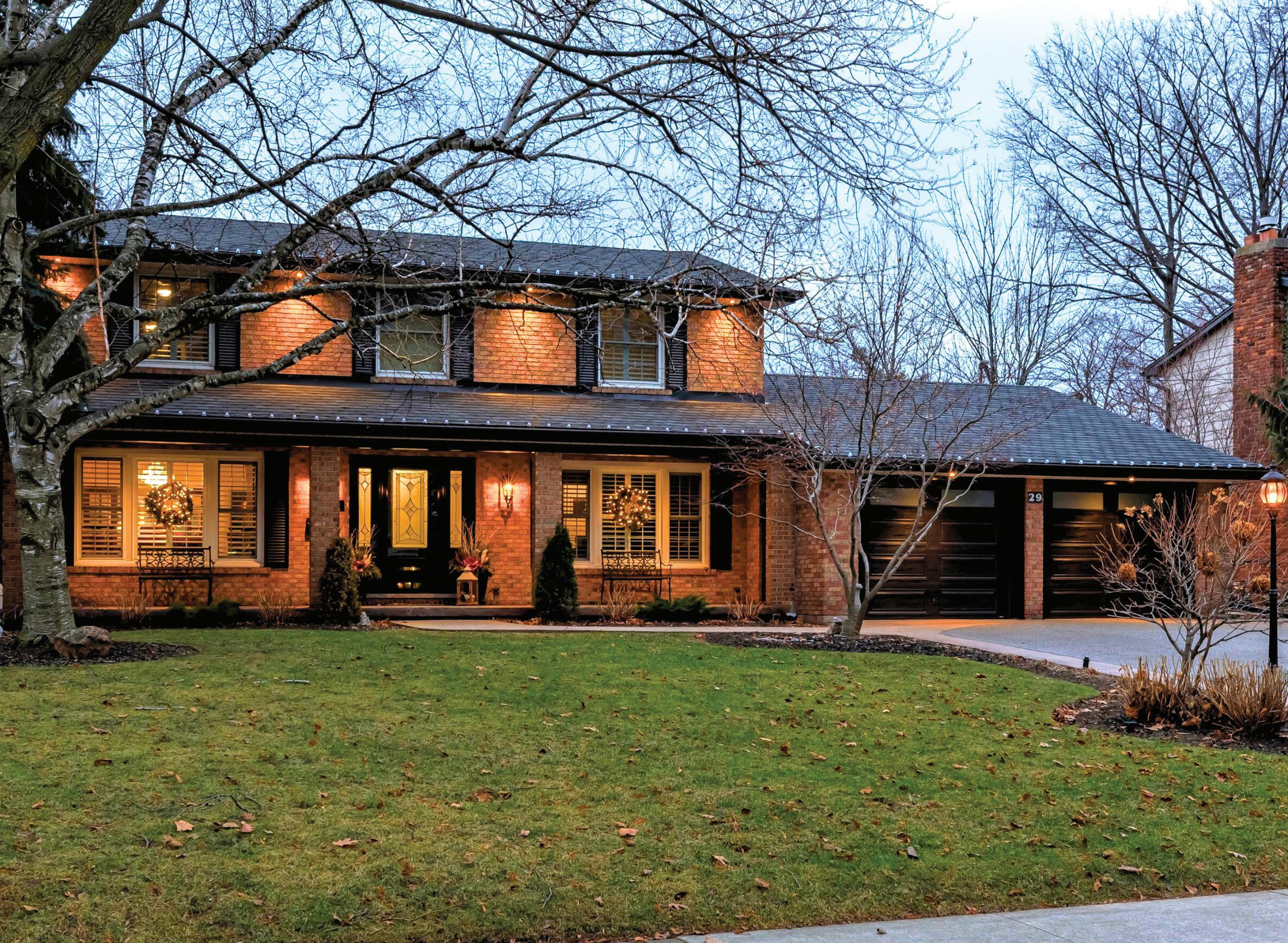Completely reimagined luxury bungalow offering over 4,800 sq ft of refined living space on a premium landscaped lot in one of Woodbridges most desirable enclaves. No detail has been overlooked in this topto-bottom transformation. The exterior showcases a natural stone facade with tiger stripe accents, 9 custom insulated garage doors, upgraded black gutters and fascia with LED pot lights, a new roof (2017), and oversized high-efficiency windows (2020). The grounds have been professionally landscaped w herringbone stone walkways, granite coping steps, mature trees, front and rear sprinkler system w Wi-Fi controls, night vision security cameras, uplighting, and a massive rear patio with matching stone design, speaker rough-ins, and EVready garage with secondary panel. Step inside to soaring ceilings, oversized porcelain foyer tile, a custom white oak staircase with glass railing, Astoria walnut engineered hardwood, solid wood/glass interior doors, oversized baseboards, and over 100 LED pot lights. Savant smart automation connects lighting, blinds, and speakers throughout. The brand new Italian-imported Scavolini kitchen features quartz counters, waterfall island, fluted glass-panel cabinetry, JenAir built-in appliances, LED undercabinet lighting, dining room with custom built-in buffet and 65 smart TV. The family room boasts a 72 three-sided porcelain fireplace, home theatre wiring, and oak detailing, while the office offers 11 vaulted ceilings, built-ins, and power blinds. The primary suite includes expanded windows, stone fireplace, automated blinds, integrated speakers, and a spa-inspired ensuite with custom vanity, fluted tub, oversized tile, and LED accents. The fully finished lower level offers an entertainers dream with a projector, Dolby 7.1 surround sound, modern dry bar, real brick feature walls, new powder room, storage, and a 2-bedroom in-law suite with separate entrance, brand new kitchen, bath, and laundry central vac, Nest system, 200AMP service,