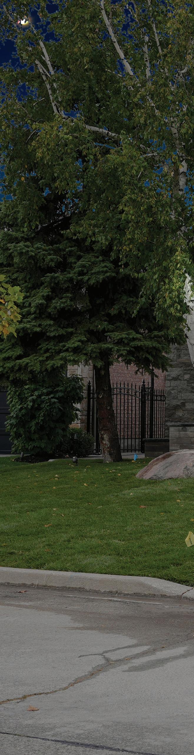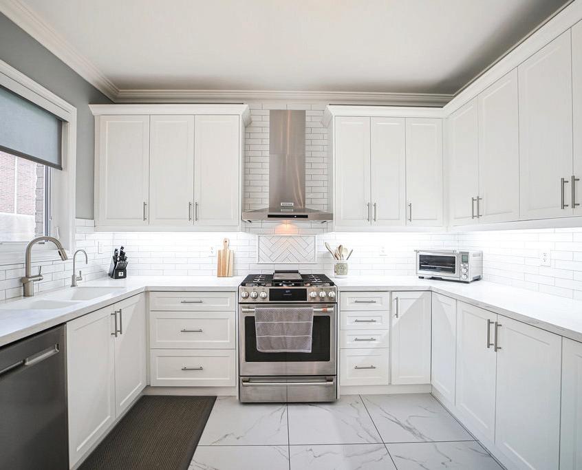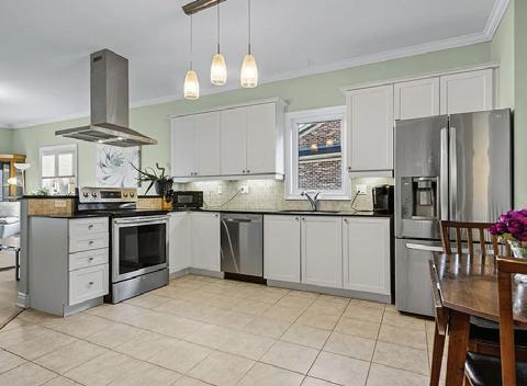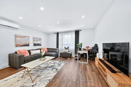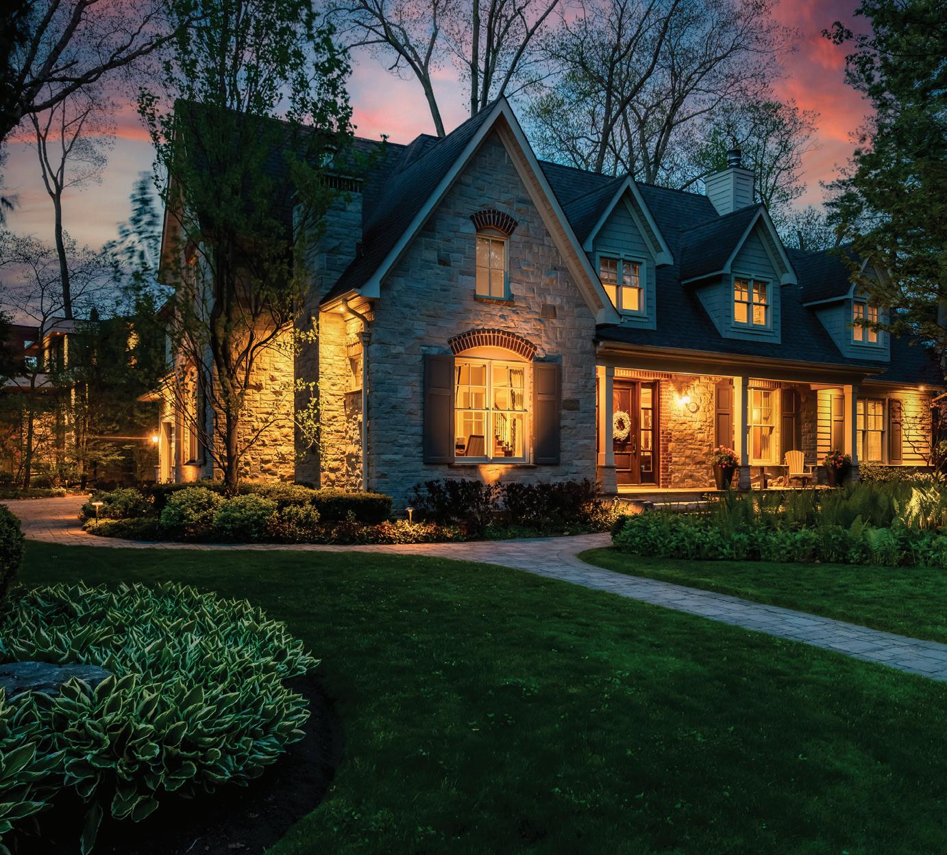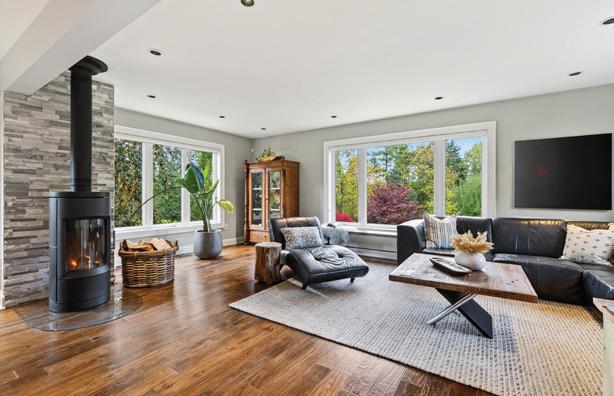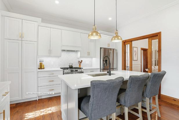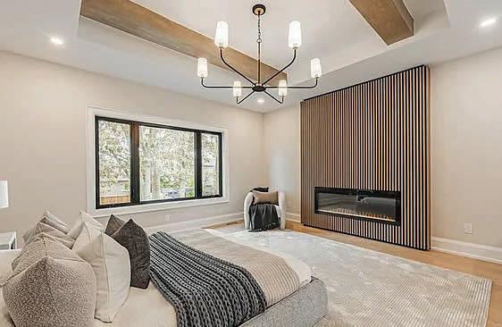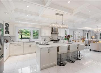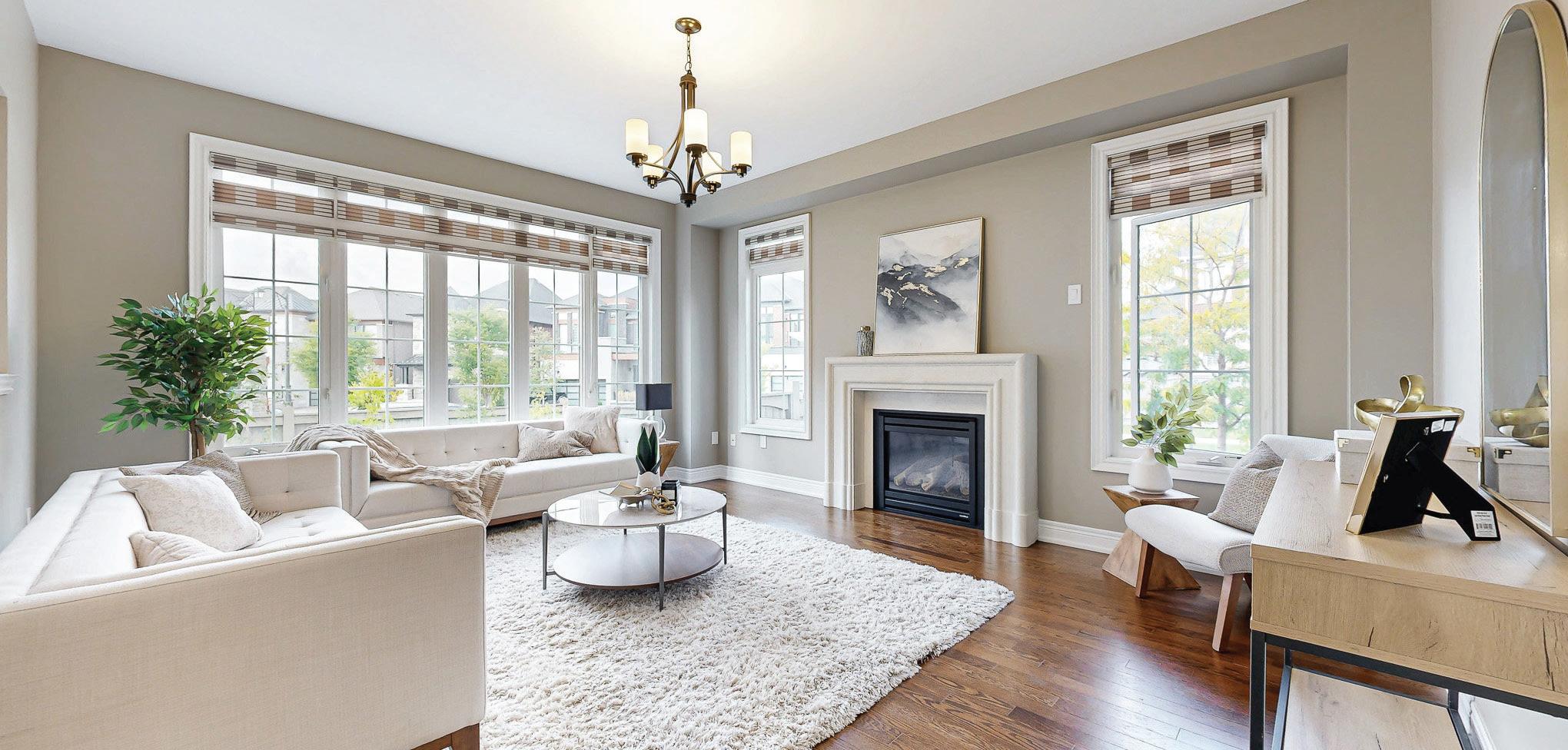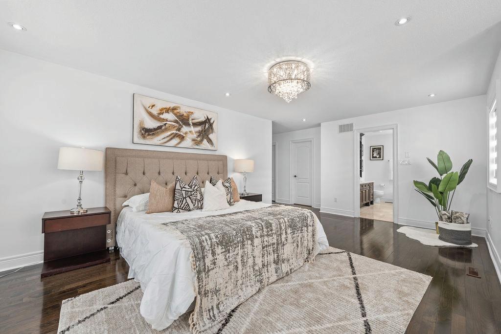 Completely reimagined luxury bungalow offering over 4,800 sq ft of refined living space on a premium landscaped lot in one of Woodbridges most desirable enclaves. No detail has been overlooked in this topto-bottom transformation. The exterior showcases a natural stone facade with tiger stripe accents, 9 custom insulated garage doors, upgraded black gutters and fascia with LED pot lights, a new roof (2017), and oversized high-efficiency windows (2020). The grounds have been professionally landscaped w herringbone stone walkways, granite coping steps, mature trees, front and rear sprinkler system w Wi-Fi controls, night vision security cameras, uplighting, and a massive rear patio with matching stone design, speaker rough-ins, and EVready garage with secondary panel. Step inside to soaring ceilings, oversized porcelain foyer tile, a custom white oak staircase with glass railing, Astoria walnut engineered hardwood, solid wood/glass interior doors, oversized baseboards, and over 100 LED pot lights. Savant smart automation connects lighting, blinds, and speakers throughout. The brand new Italian-imported Scavolini kitchen features quartz counters, waterfall island, fluted glass-panel cabinetry, JenAir built-in appliances, LED undercabinet lighting, dining room with custom built-in buffet and 65 smart TV. The family room boasts a 72 three-sided porcelain fireplace, home theatre wiring, and oak detailing, while the office offers 11 vaulted ceilings, built-ins, and power blinds. The primary suite includes expanded windows, stone fireplace, automated blinds, integrated speakers, and a spa-inspired ensuite with custom vanity, fluted tub, oversized tile, and LED accents. The fully finished lower level offers an entertainers dream with a projector, Dolby 7.1 surround sound, modern dry bar, real brick feature walls, new powder room, storage, and a 2-bedroom in-law suite with separate entrance, brand new kitchen, bath, and laundry central vac, Nest system, 200AMP service,