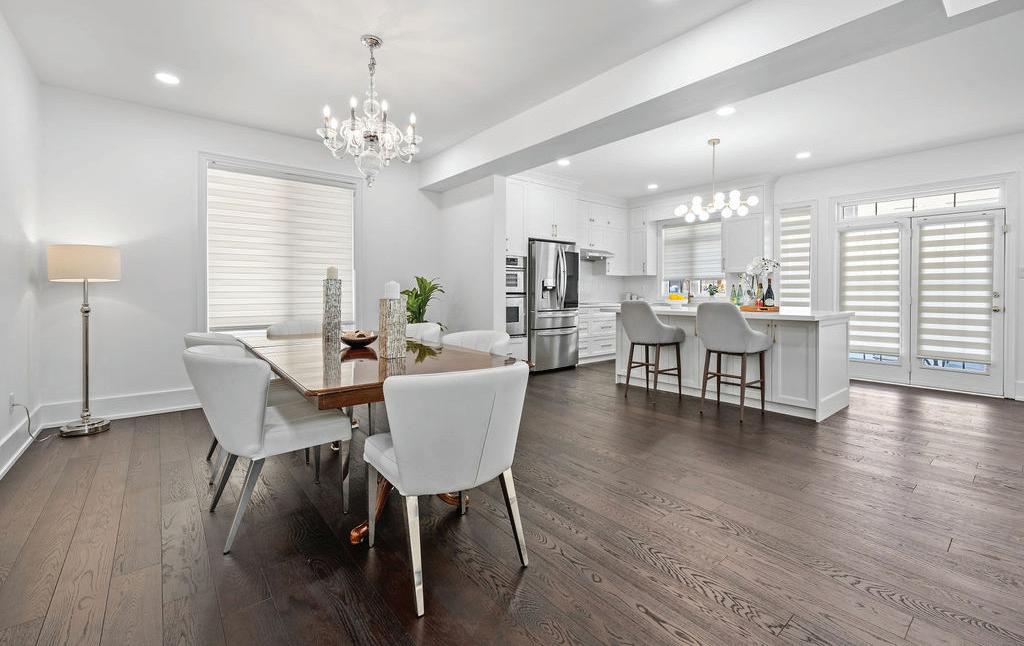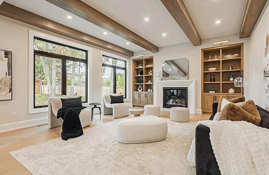Experience the pinnacle of modern living at 81 Doans Ridge Road - an interior design gem offering 3,025 sq ft of refined space on a 60' x 200' lot. From the moment you step inside, the open-concept main floor sets the tone with soaring 9' ceilings, rich engineered hardwood, custom white oak wall paneling, in-ceiling speakers, and sun-filled windows. The chef's kitchen is a show stopper with a 48 Thermador gas range, 36 Thermador fridge, 8' island, and walk-in pantry-perfect for hosting.