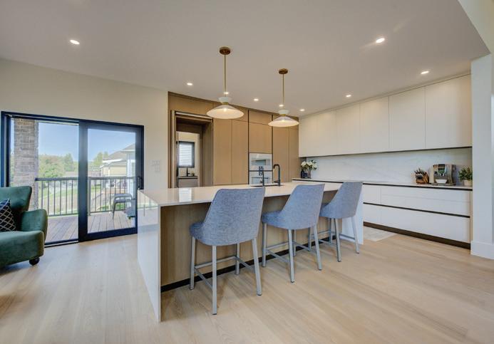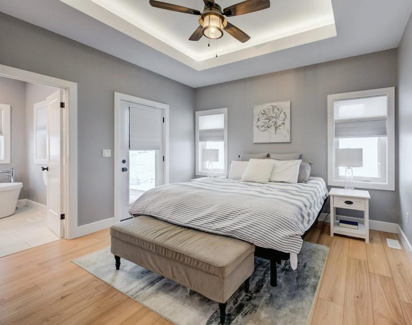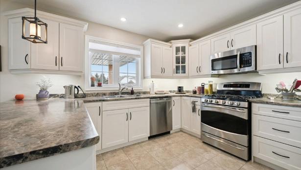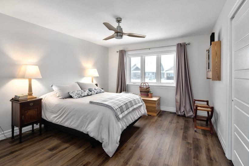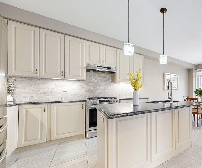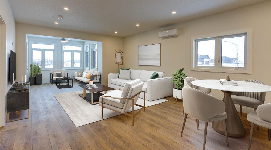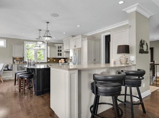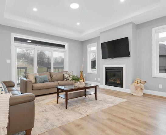 As you enter, you are welcomed into a bright open-concept layout with 9ft ceilings. The kitchen is a true highlight, with granite and concrete counter tops, generous size island, upgraded appliances and walk-in pantry. Perfect for entertaining, the adjoining dining and living areas provide ample space for gatherings, while the threeseason room offers a relaxing retreat with views of the outdoors. This level also includes a convenient laundry room, half bath for guests, and additional bedroom/home office. Upstairs, you’ll find two generously sized bedrooms, 4-piece bathroom and room for bonus/rec room which awaits your personal touch.