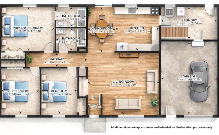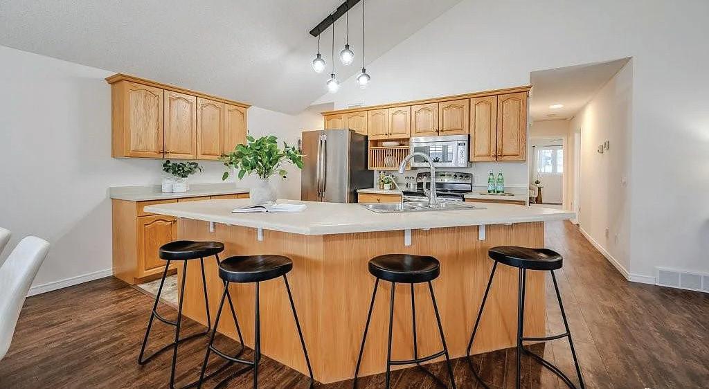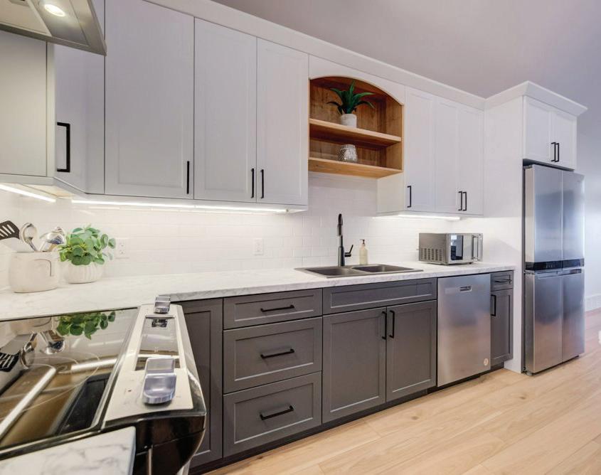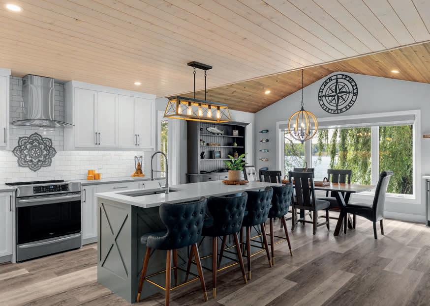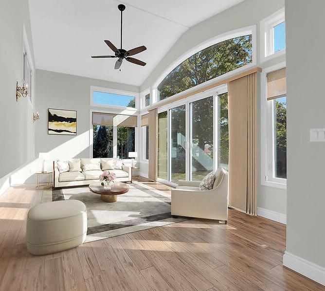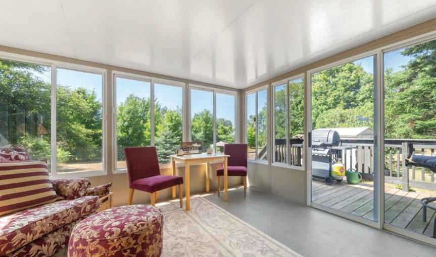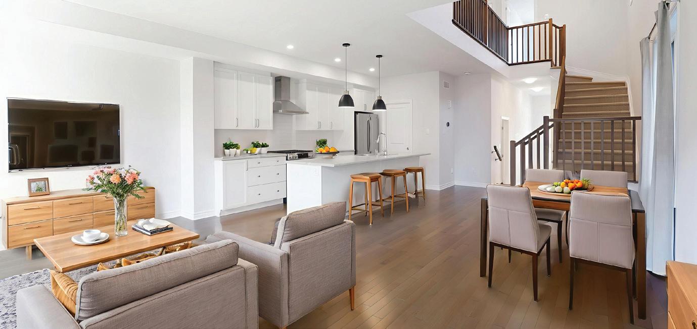 As you enter, you are welcomed into a bright open-concept layout with 9ft ceilings. The kitchen is a true highlight, with granite and concrete counter tops, generous size island, upgraded appliances and walk-in pantry. Perfect for entertaining, the adjoining dining and living areas provide ample space for gatherings, while the threeseason room offers a relaxing retreat with views of the outdoors. This level also includes a convenient laundry room, half bath for guests, and additional bedroom/home office. Upstairs, you’ll find two generously sized bedrooms, 4-piece bathroom and room for bonus/rec room which awaits your personal touch.