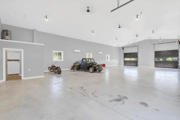 Three car oversized finished attached garage is accessed from the 3 car wide, 5 car long finished concrete driveway.
