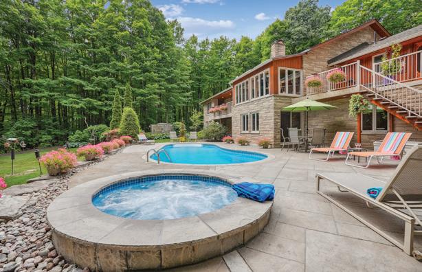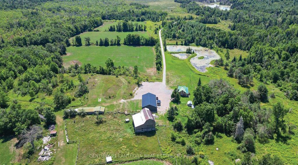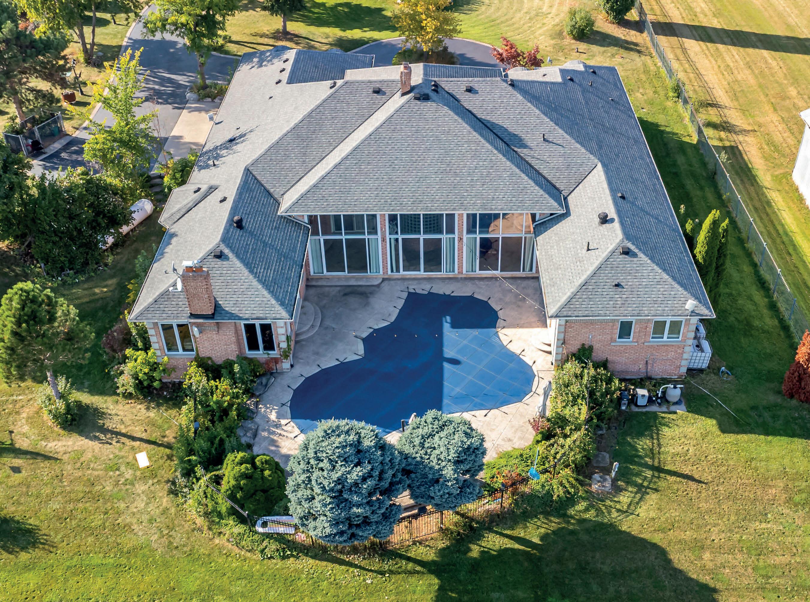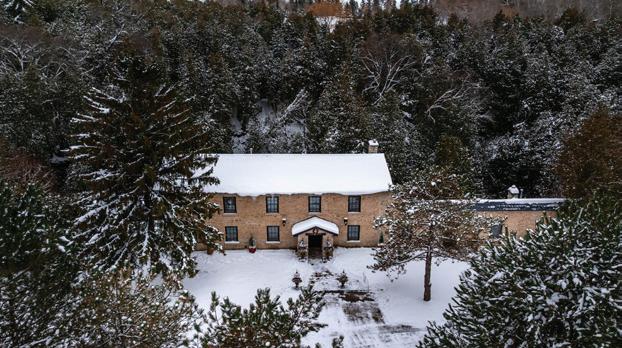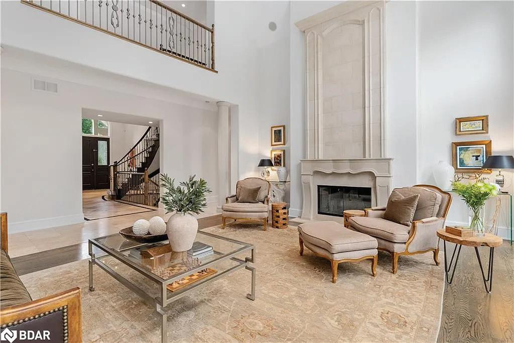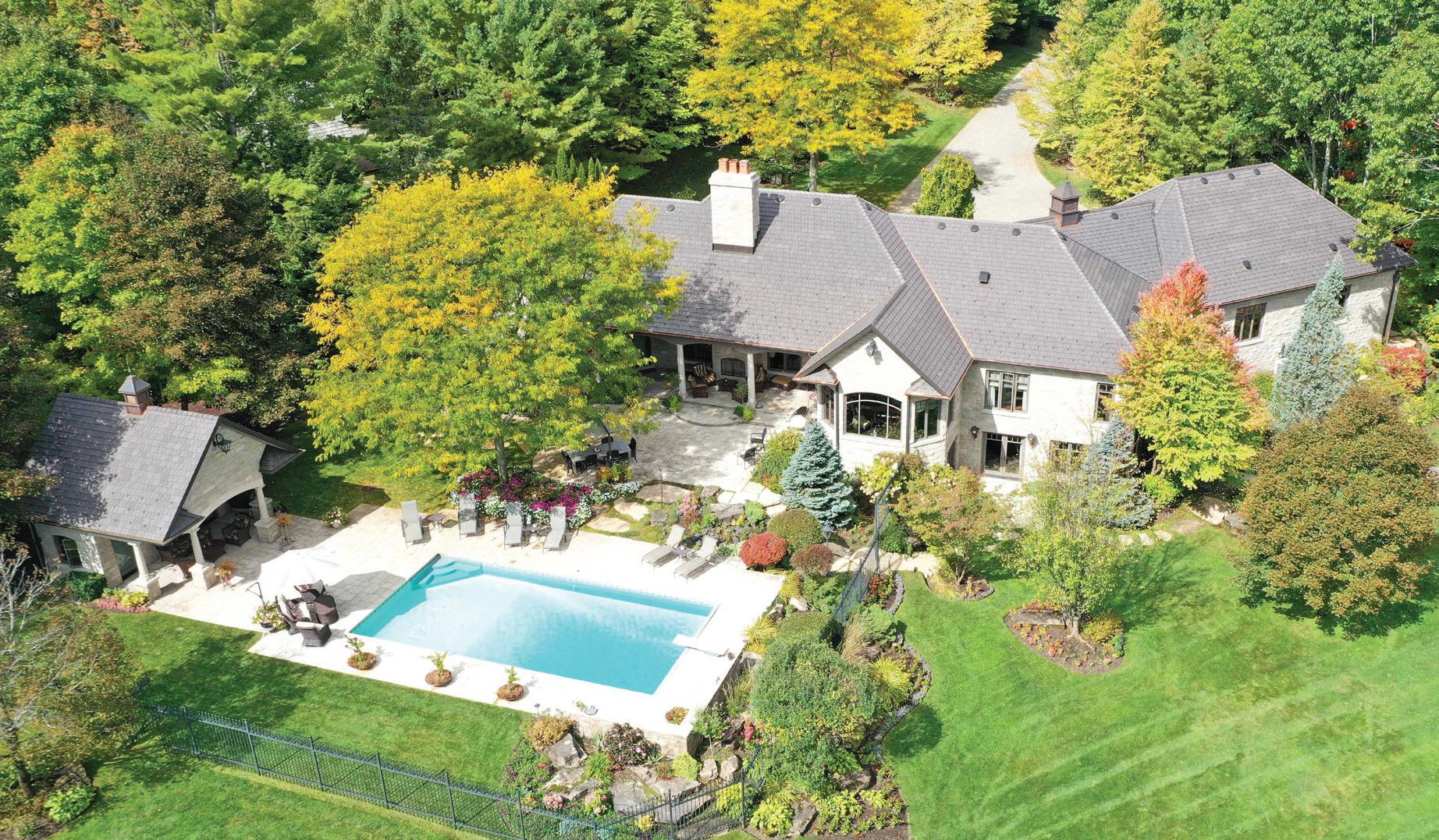 Welcome to this extraordinary private estate nestled on 92.15 acres of pristine forest, complete with a pond, stream, meadows and kilometers of private nature trails. A gated entrance framed by handcrafted Owen Sound stone pillars and wrought-iron gates leads to a winding drive and a secluded hilltop estate. Designed by an architect and built by Bristol Homes, this residence showcases impeccable craftsmanship with Owen Sound stone, copper accents, Indiana limestone window sills, and a 50-year Enviroshake roof ($275K). Inside, the grand foyer features heated slate floors and custom lighting. The formal living room boasts a stunning stone fireplace and arched windows, while the elegant library offers custom bookcases and solid wood finishes. The chef’s kitchen is both functional and beautiful, with granite counters, heated floors, a large breakfast bar, and camera monitors offering views of the gated entrance. The principal suite is a serene retreat with Brazilian mahogany floors, walk-out to the pool, and a luxurious ensuite. Two additional bedrooms share a well-appointed 5 pc.ensuite. The lower level is ideal for entertaining, featuring a theatre zone, games room, gym, sauna, and a state-of-the-art mechanical room. Outdoors, enjoy a heated saltwater pool, stone patio, and matching cabana with sauna and 100-amp service. The beautifully renovated separate 800 sq ft guest house includes two bedrooms and Loewen windows. A 1,500 sq ft four-bay garage offers 11-ft ceilings, radiant heating, and built-in sound. This rare offering combines total privacy with convenient access to Markham, Aurora, GO Transit, Hwy 407/404, and is just 50 minutes to Pearson Airport. This property is not just a home-it’s a Timeless Estate where Luxury and Nature Live in Harmony.