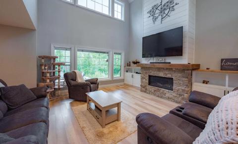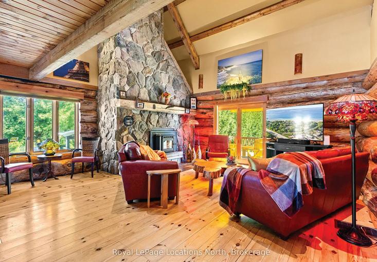 Experience the charm of Caledon in this beautifully restored log home—once a ski lodge, now a timeless 2.78-acre retreat. Featuring nearly 2,500 sq. ft. living space of rustic elegance, it offers soaring beams, a dramatic stone fireplace, and serene pond views. Enjoy a perfect blend of heritage and modern comfort, just minutes from town yet surrounded by nature’s peace. A rare, cinematic escape where every season feels magical.