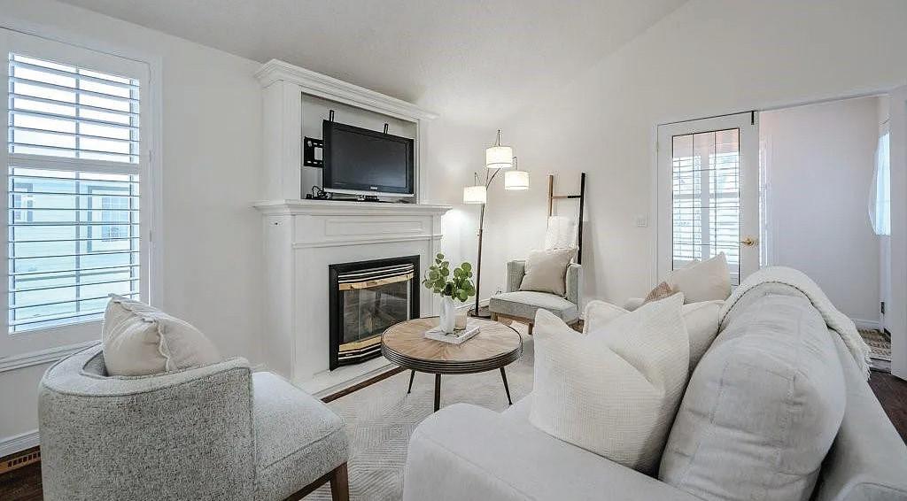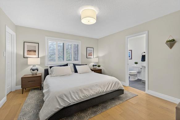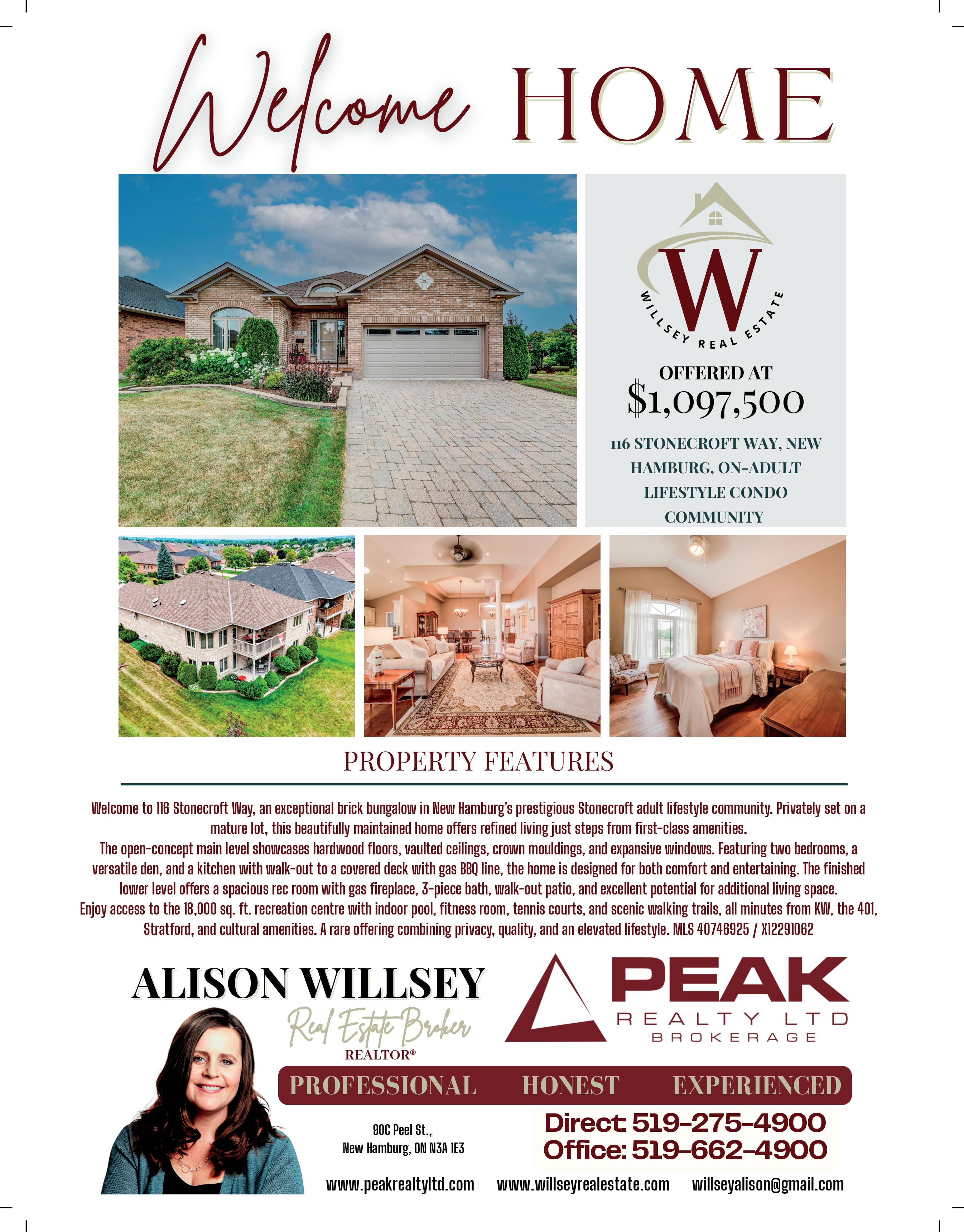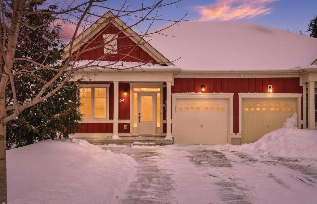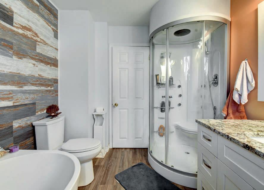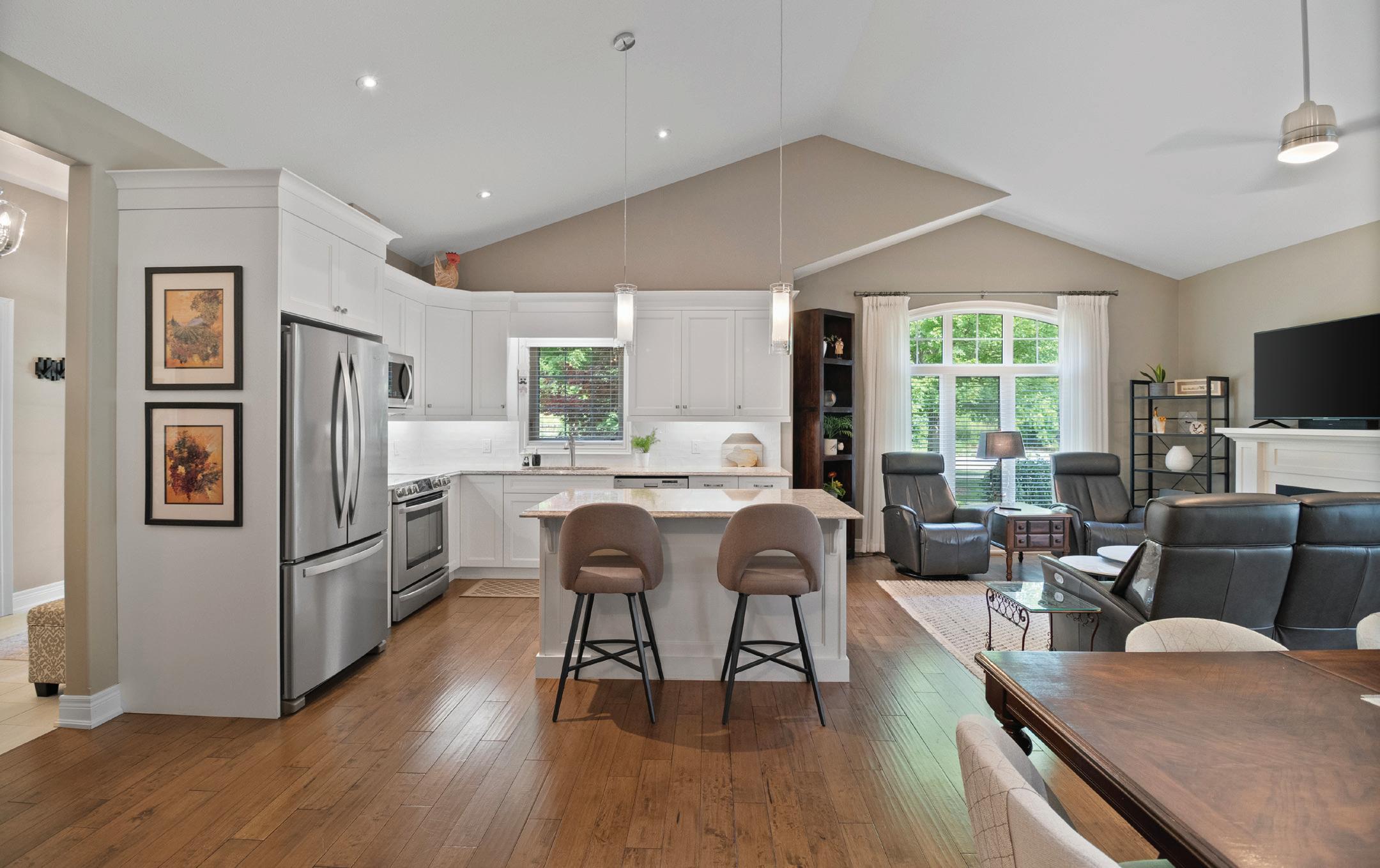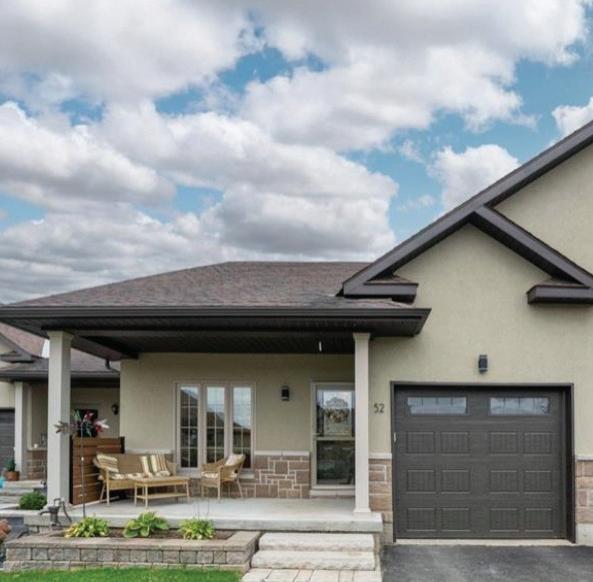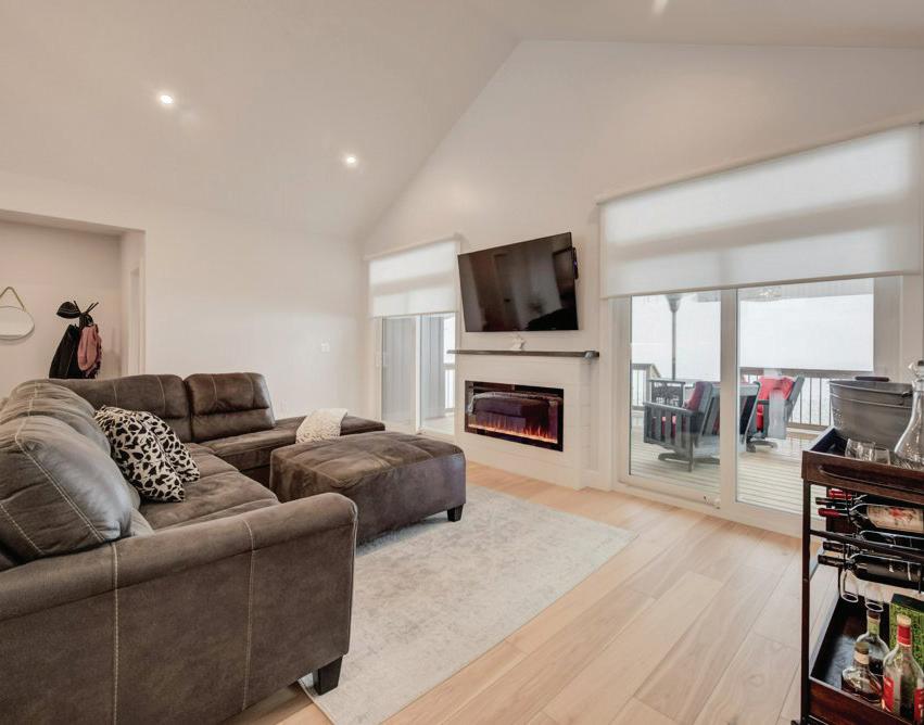 Welcome to this beautifully finished true ranch bungalow in the heart of Wasaga Beach, offering easy one-level living in a freehold semi-detached home with no condo fees. This 2-bedroom, 2-bathroom home features 9’ ceilings, hardwood flooring, pot lights, custom blinds, upgraded hardware, and an attached garage with inside entry to a stylish laundry room with custom live-edge countertop and extra storage. The bright kitchen includes quartz countertops, stainless steel appliances, ample cabinetry, and a breakfast bar, flowing into a sun-filled living space with a shiplapped gas fireplace. French doors open to a private, fully fenced backyard with concrete patio, retractable awning, and storage shed, perfect for lowmaintenance outdoor living. With a vaulted-ceiling primary suite, ondemand hot water, parking for two, and a quiet location just a short walk to the beach, shops, restaurants, and community centre, this home is ideal for first-time buyers, retirees, or a weekend getaway.