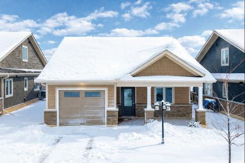 Set on a beautifully landscaped half-acre lot, this executive home offers the perfect blend of elegance, comfort, and functionality in a serene natural setting. The inviting covered porch and impressive glass entryway create an immediate sense of welcome. Inside, an open-concept layout connects the great room—with its soaring cathedral ceilings and stone fireplace—to the stylish chef’s kitchen featuring granite countertops, a large island, and walkout to a deck and pergola. The main-floor primary suite serves as a private retreat with a spa-inspired ensuite and custom walk-in closet. Upstairs, two bright bedrooms share a luxurious 5-piece bath, while the finished basement extends the living space with a rec room, gas fireplace, media area, and exercise zone. Residents enjoy scenic trails, year-round recreation, and exclusive Braestone Farms community events. A rare combination of refined luxury and relaxed, nature-infused living.