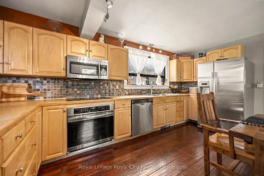 This versatile property offers incredible potential, ideally located on Highway 6 with commercial zoning. Set on 1.5 acres, the property includes a dog run, firepit area, and a majestic willow tree. Inside the main home, you are afforded 3 bdrms plus a den, and a 4Pc bath. Spacious kitchen, open concept layout, dining room features a walkout to the deck, as well as access to the in-law suite. The in-law suite is a flexible space, featuring its own entry, 2Pc bathroom plus a separate shower/sink, and a cozy woodstove. Minutes from Tobermory and local amenities.
