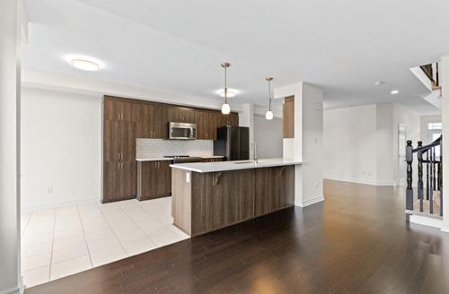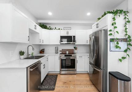 This stunning end-unit executive townhome offers the perfect blend of luxury, convenience, and coastal charm. This Stunning End Unit Townhome Is A Must See!! The open-concept second floor features gleaming hardwood floors, a modern kitchen that is a chefs dream with high-end appliances, granite countertops, and a center island. You’ll also find an additional bedroom and a laundry room with built-in shelving. Step outside to the spacious balcony perfect for lounging, dining, and BBQing with family and friends. The ground floor includes a bright bedroom, a welcoming living room with direct access to a private patio, a full 3-piece bathroom, ample storage, and convenient interior access to the garage. The upper level showcases a serene primary suite complete with walk-in closets and a spa-inspired 5-piece ensuite featuring a deep soaker Jacuzzi tub. Two additional generously-sized bedrooms and a well-appointed 4-piece main bath complete this level. This home provides ample space for both residents and guests. Enjoy maintenance-free living with services including garbage collection, garden maintenance, and Lawn Sprinkler system. All this while being located in the heart of Bronte just five min. away from vibrant dining, boutique shopping, grocery stores, Oakville Trafalgar Memorial Hospital and the scenic Grandand West Oak Trails. This is more than just a home its a lifestyle. The Basement is unfinished with rough in washer/dryer and bathroom, easily can be finished with separate entrance.