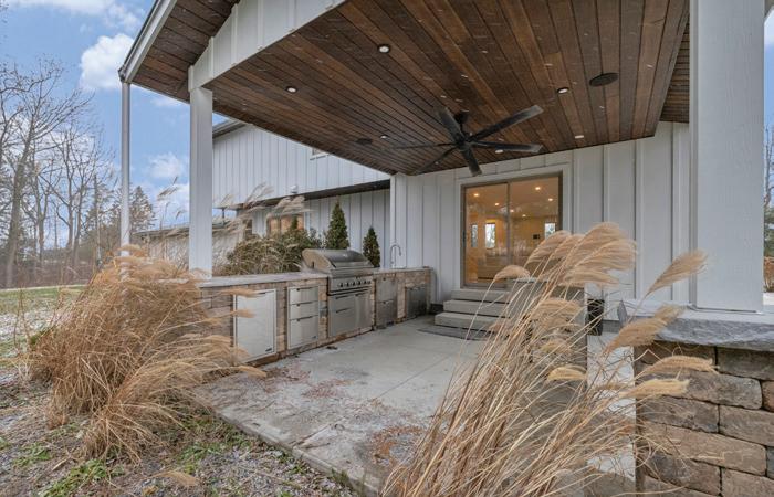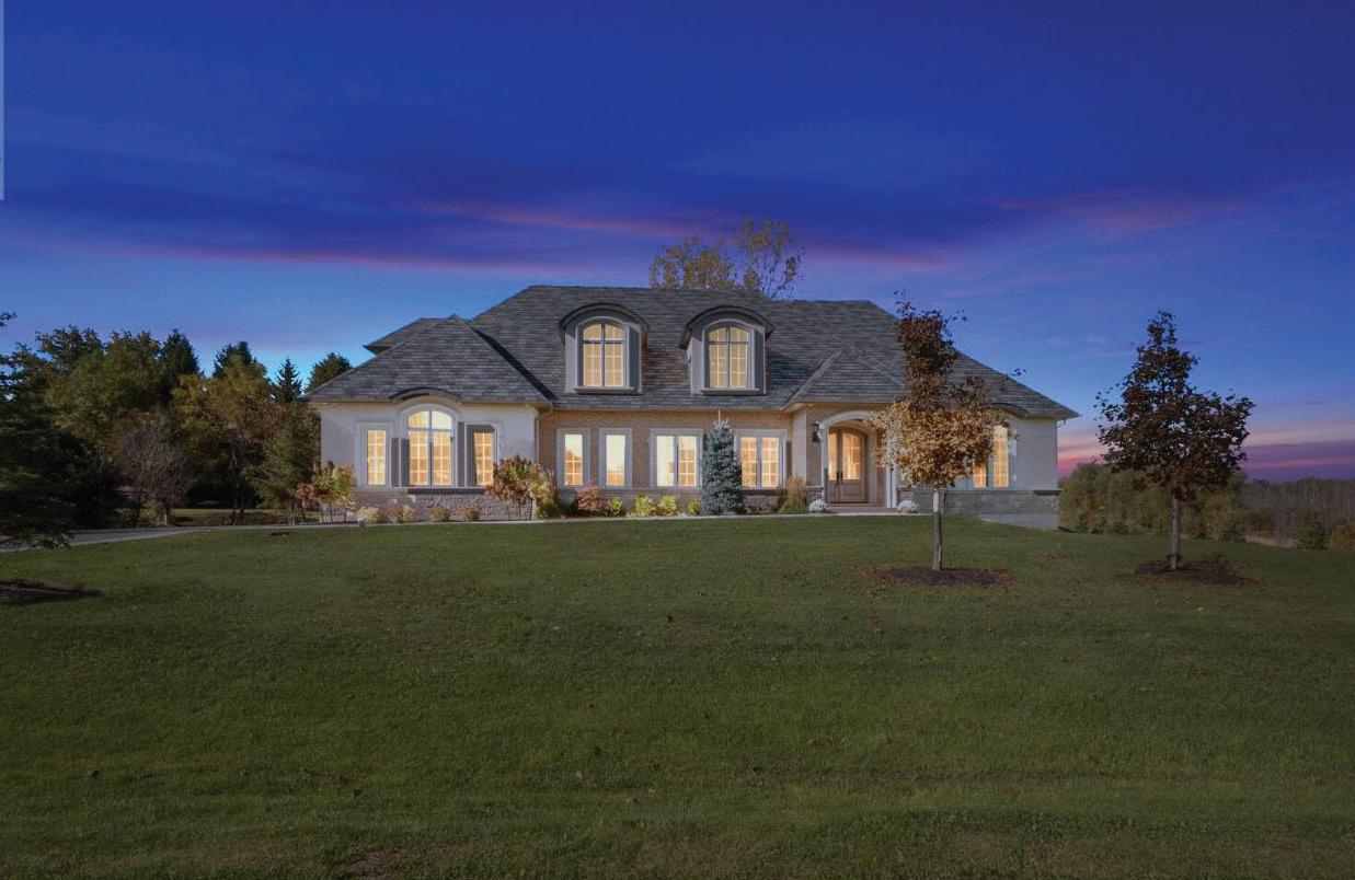 The kitchen has a built-in oven, dishwasher and multi-burner gas cooktop. Roughed in outdoor kitchen on the back covered porch overlooking the treed backyard that looks upon farm field for miles. The executive office, dining room and combination mudroom and laundry off of the garage entrance complete the main floor.