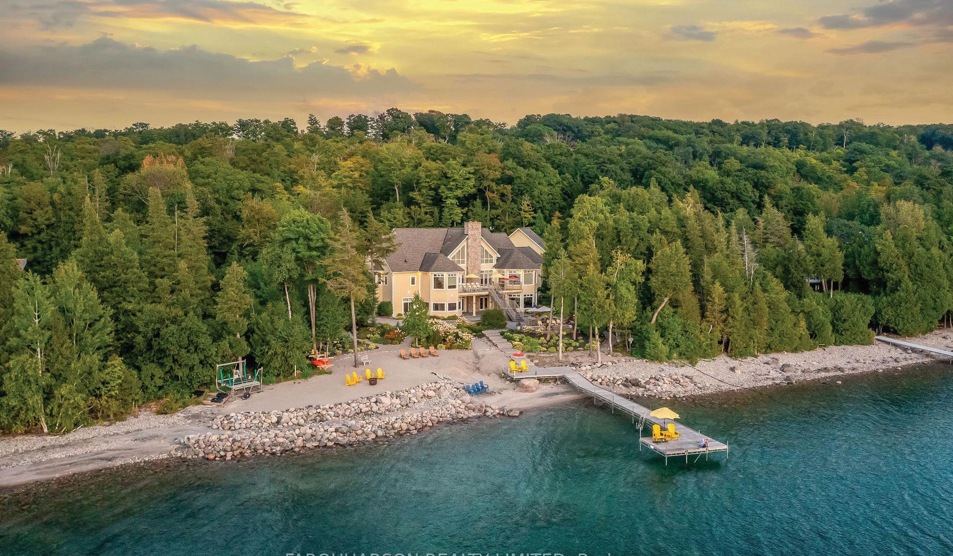 Incomparable Private West Facing 2 Acres With 239 Ft. Of Water Frontage in One of the Finest Large Lot Communities in Southern Georgian Bay. Private Sand Beach. New Heavy Duty Dock in the Box 2025 Architect Designed Home With Large Rooms, 10-27 Ft Ceilings, Rock Elm Floors, Stone Fireplaces, Walls of Glass Facing Sunsets. Over 9,000 Sq. Ft of Luxury Living. Entertainment Sized Kitchen and Dining, Sensational Burled Maple Media Room, Cocktail Room, and Lower Screened Muskoka room. This Exquisite Luxury Estate Is a Custom Designed Multi-Generational Retreat With 2 Kitchens, 8 Spacious Bedrooms, 8 Baths, 3 Laundry Rooms, Multiple Walkouts, Vaulted Ceilings. Every Corner of This Home Exudes Comfort, Tranquility and Functionality and the Meticulous Craftsmanship Is Evident in Its Design Details. Separate 2-Bedroom, 2 Bath Apartment or Guest Quarters Over Garage. Immersed in the Natural Beauty of Its Surroundings, This WestFacing Sanctuary With Crystal Clear Waters, Gifts Its Occupants With Breathtaking Sunsets and Picturesque Vistas of Georgian Bay and the Hills of the Blue Mountains, Plus the Best Boating in South Georgian Bay