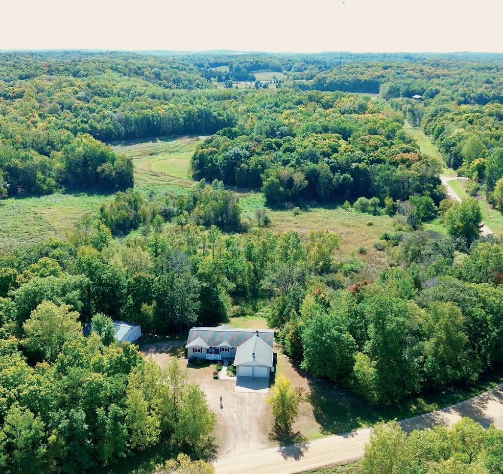 Exceptional custom home with luxury finishes on a sprawling 60 acres overlooking the beautiful Mississippi valley! This stunning custom-built 5-bed, 3-bath, home offers a perfect blend of craftsmanship, comfort, and modern amenities. Designed with impeccable attention to detail, this home features vaulted ceilings on the main level with quarter-sawn oak floors, doors, cabinetry and trim throughout, creating a warm and timeless aesthetic. The spacious kitchen is a chef’s dream, featuring quartz countertops, stainless steel appliances, and custom cabinetry, while the formal dining area is perfect for entertaining. The great room boasts a gas fireplace surrounded by custom cabinetry. The large windows and patio doors offer expansive views of a breathtaking backdrop of the property and the Mississippi River Valley. The lower-level family room features a cozy wood-burning fireplace, complemented by in-floor heating. The walk-out lower level boasts 10-foot ceilings and large patio doors that add to the spacious atmosphere. A geothermal heating system ensures energy efficiency, along with an air exchanger and radon-eliminating system for superior indoor air quality. The expansive owner’s suite is a true retreat, featuring his and hers walk-in closets, a spa-like bath with a soaking tub, walk-in shower, and heated floors. The large laundry room is thoughtfully designed with a sink, custom cabinetry, and heated floors. All bedrooms include walk-in closets, with plush carpeting for a cozy touch. Outdoor living is just as impressive with two decks with high end composite, stamped cement patio, cement siding, and a new roof (2023). The heated and insulated garage includes a quality garage floor coating, while the heated workshop below the garage provides additional workspace. For those who love the outdoors, the 50x80’ pole shed includes a heated, fully furnished 1 bedroom, 1 bath bunkhouse and insulated garage, along with an additional small garage for extra storage. The property is a hunter’s paradise, featuring prime deer hunting, established trails, a scenic pond, and a 125-tree fenced apple orchard with grapes, blueberries, and raspberries. The hillside curb appeal is amazing with a vinyl fence, paved driveway, and breathtaking surroundings that complete this one-of-a-kind property. Don’t miss this rare opportunity to own a home that truly has it all!