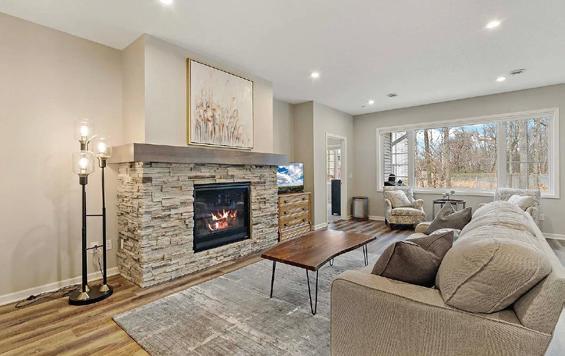 Experience the lifestyle you’ve always envisioned at The Park in Chanhassen! This exceptional Taylor floor plan by Lennar is more than just a home — it’s a gateway to refined living. The heart of the home is a stunning gourmet kitchen, complete with a spacious center island, sleek white cabinetry, upgraded quartz countertops, chic backsplash, and under-cabinet lighting that enhances its elegance. Whether entertaining or unwinding, the inviting gas fireplace with a shiplap surround sets the perfect ambiance. A private main-floor office, featuring French doors and a stylish accent wall, provides an ideal work-from-home space. Upstairs, you’ll find four generously sized bedrooms, a versatile loft, and a convenient laundry room. The luxurious owner’s suite boasts a box ceiling detail, an expansive walk-in closet, and a spa-inspired bath with a beautifully tiled shower stall. The newly finished walk-out lower level is designed for both relaxation and entertainment, offering a built-in beverage area, a fifth bedroom, and a tastefully designed ¾ bath. Step outside to enjoy the custom patio and a spacious, irrigated backyard — perfect for hosting or unwinding. Plus, the patio is hot tub-ready, with electrical already installed. Every detail of this home is crafted for style and convenience, from the engineered wood floors on the main level and the expansive composite deck to the smart technology included in the Connected Home package. The extended third garage stall provides ample space for larger vehicles or extra storage. With its pristine condition and carefully curated upgrades, this home is ready to provide a lifestyle of comfort, sophistication, and tranquility.
