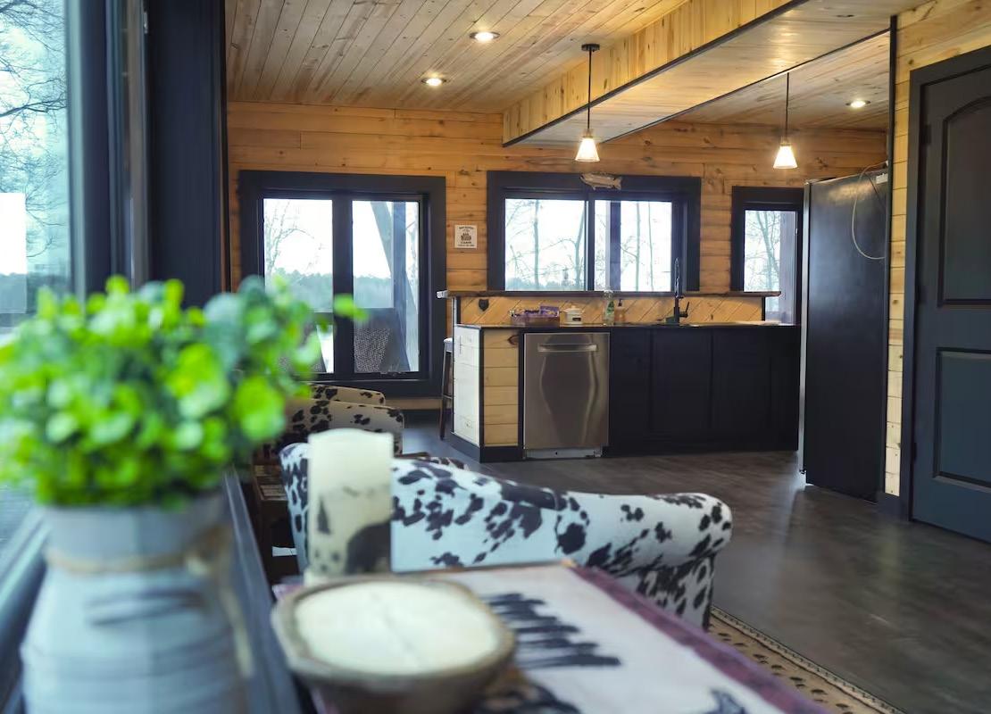 Farmhouse: The main house features an artfully designed great room adorned with Swedish design elements, providing a cozy yet sophisticated living space.