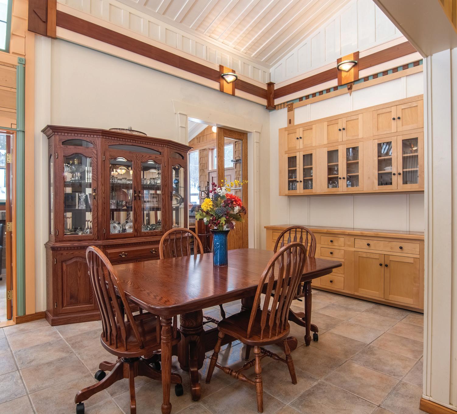 The great room is the heart of the farmhouse, featuring high ceilings, large windows, and an open layout. A large kitchen/dining room creates a warm and inviting atmosphere.