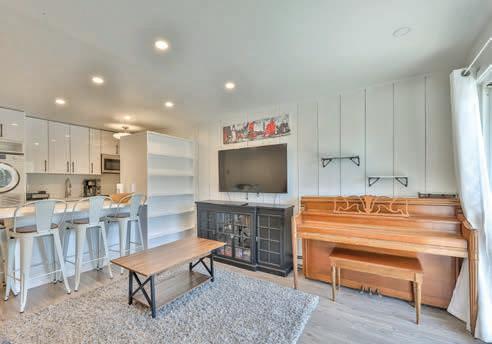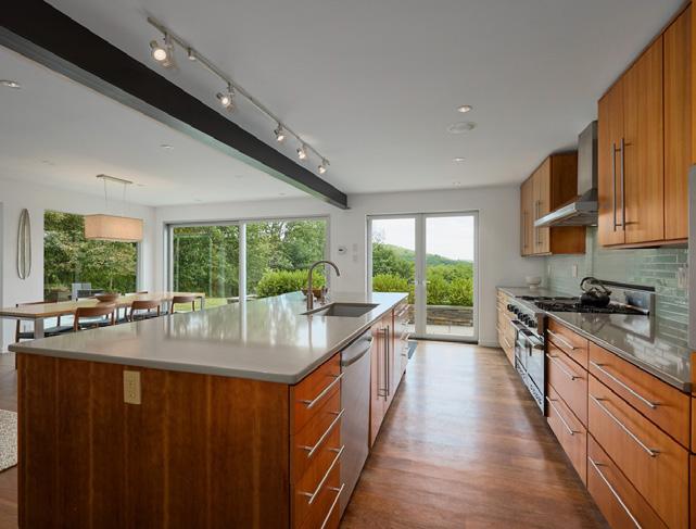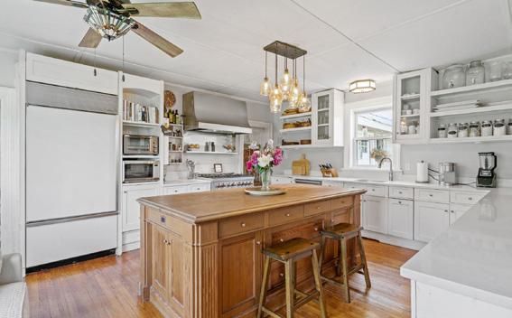 At the heart of the home is a modern kitchen with a butler’s pantry, opening to a gracious dining area and second living room with fireplace. Glass doors invite outdoor living, whether it’s stargazing over dinner or enjoying the morning sun.