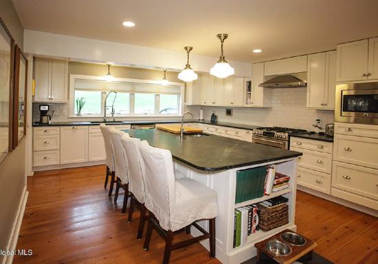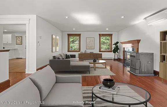 Welcome to the “Red Shutters” an exquisitely restored turn-key home perfectly blending original exceptional craftsmanship with modern efficient upgrades. Minutes to Village of Catskill, Hudson (Amtrak), the Thruway Exit 21 & convenient to outdoor activities at Hunter & Windham mountains. This meticulously renovated property offers 5-6 BRs and 3 full baths over two sunlit floors, with multiple entry points for flexible living arrangements, a restored barn w/loft & attached heated garage. ONE-OF-A-KIND Property - a personal retreat with an abundance of options - as your needs grow - your personal space can also grow! Perfect for Multigenerational living or an “Exclusive always available” Owner get-a-way plus Rental or Air Bnb income to offset expenses. Current Configuration is: Spacious ONE LEVEL Living w/3BR & 2 Baths plus a duplex space of an additional 3 X-tra large FLEX SPACE rooms on a portion of the 2nd floor plus a 2nd Floor 2 BR/1 Bath Rental Apt utilizing a Private Outside Entrance (Interior stairway btw 1st & 2nd Floors beautifully restored for use, if needed.) The expansive 1st floor features a chef’s kitchen, formal dining room, exquisite living room w/original mantel, lit tray ceiling & a king size master BR - high ceilings, crown moldings, restored original moldings/wood floors throughout. Extensive list of upgrades available for this no expense spared renovation. Easy access: to outdoor adventures - ski, hike, kayak, golf, Saugerties, HITS, Woodstock, festivals, farm to table dining & more! 2 Hours NYC. Mid-way btw Kingston & Albany. The perfect blend of country living with quick access to all. This is your chance to own a piece of NY History that is move-in ready - a RARE FIND. Start enjoying the Hudson Valley today - EVERYTHING has been done for you ! Property Website: https://RedShuttersCatskill.com