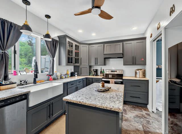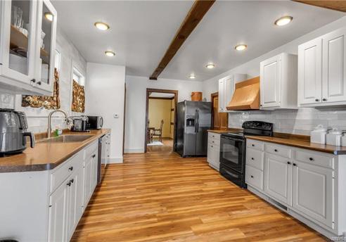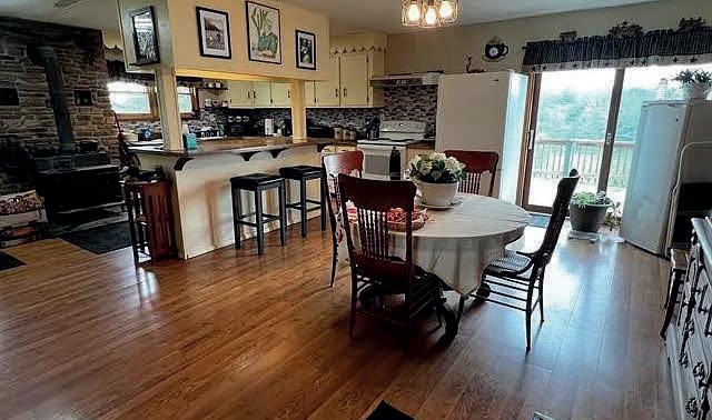 Charming and updated country estate offering 2,876 sq ft of warm, functional living space. This beautifully maintained home blends timeless character with modern amenities, including a convenient first-floor bedroom, full bath, and laundry. The spacious kitchen connects seamlessly to formal living and dining rooms— ideal for entertaining and everyday living. Upstairs features four well-sized bedrooms and a flexible layout full of potential. Situated on a private, partially fenced 0.70-acre lot, this property offers both space and tranquility. The detached hillside garage has been converted into a commercial retail space and workshop, with the potential to be restored to a garage with a new door installation. A unique opportunity to enjoy country living with modern comfort