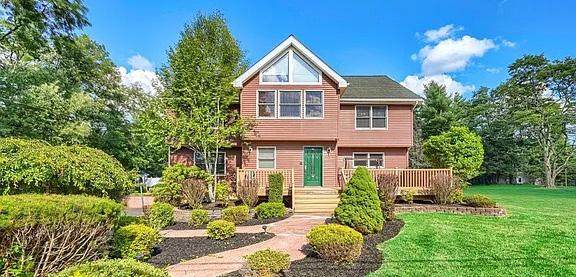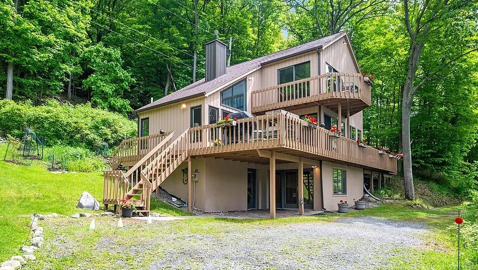 Builders own private picturesque property tucked away in the Hamlet of Myers Corners of Dutchess County. This large parcel of property has over a thousand feet of walking trails, with numerous decks to enjoy the beauty. Perfect for entertaining friends and family or even a wedding! The meandering driveway leads itself to multiple parking with a cul de sac style. Numerous gardens and a unilock raised vegetable bed. Oversized storage shed and a log cabin in the woods, complete with electric and finished interior. The water features on the property invites a tranquil escape from the long day. Newer solar panel are owned. The interior of this oversized Cape Cod offers an open floor plan. The top floor primary bedroom suite offers cathedral ceilings, wood stove, ventless gas fireplace, wet bar and French doors leading to the large balcony with a hot tub. It also has views of the water features and the Appalachian Mountains in the winter. The primary bedroom also has a full bath with Jacuzzi tub. The main level offers family room with a wood burning stove for ambiance. Exquisite Acacia wood floors are in both the family room and living room. A set of barn style doors separate the kitchen from the family room. This entire level has been upgraded and the kitchen cabinets are an upgraded Maple including over cabinet lighting, granite countertops, coffee bar and beautiful California slate flooring. From the kitchen there are French doors leading to the large sunroom with two access doors to the decks. The guest bath has heated flooring, even in the shower! Lower level has an open floor plan, full bath, wet bar and French doors leading to the driveway. There is ample storage on this level and has a new water softener system. The house is well maintained and meticulously maintained. You are 17 minutes to the TSP, 15 minutes to either Poughkeepsie or New Hamburg train station. 1 minute drive to the Dutchess Rail Trail. Less than a minute to local park with pickleball, tennis court, volleyball and playground. Too many details to mention. A must see before it’s gone.
