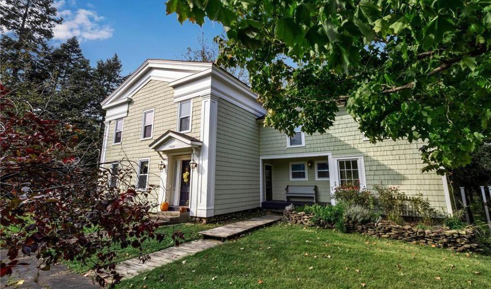 Welcome to your peaceful country retreat in the heart of the Finger Lakes! Located in the highly desirable Victor School District & nestled within a tranquil agricultural district, this stately 4-bedroom, 2.5-bath brick Georgian Colonial offers refined living on a beautiful 8-acre estate—just minutes from Eastview Mall, I-490 & I-90 for effortless commuting. This timeless 2-story brick home features elegant gabled rooflines, gleaming hardwd flrs throughout, & spacious formal living & dining areas filled w/natural light. Warmth & sophistication radiate from every rm. Unwind year-round in the sun-drenched sunrm w/radiant heated flrs, the perfect space to enjoy the beauty of the seasons in cozy comfort. Surrounded by mature trees & rolling pastures, this 8-acre estate offers unmatched tranquility, privacy, & stunning natural views—ideal for quiet reflection or outdoor gatherings. Equipped w/5 stalls, heated tack rm, water, electric, & hay storage, the barn is perfect for horse lovers or hobby farmers. 4 BEDS | 3 BATHS | 2,760 SQFT. | $750,000