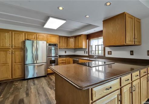 This stately custom-built home is a true masterpiece, showcasing magnificent details and finishes throughout. From the moment you arrive, the home’s commanding presence and timeless architecture make a statement of sophistication and grandeur. As you step inside through the double French doors, you are greeted by a grand circular staircase and a soaring two-story foyer, featuring hardwood floors and exquisite millwork that leads to the expansive living spaces. The layout is designed for both lavish entertaining and comfortable everyday living. The kitchen is a chef’s dream, equipped with professional-grade appliances, custom cabinetry, granite countertops, hardwood floors, a spacious island with a breakfast bar, and a large eating area with a two-sided fireplace. A convenient butler’s pantry with a French pocket door adjacent to the kitchen serves as an excellent bonus space for entertaining. The sophisticated den boasts magnificent custom woodwork, a coffered ceiling, and stunning built-ins. The formal dining room is enhanced by custom-built-ins with lighting, beautiful woodwork, and floor-to-ceiling windows. The formal living room features crown molding and expansive windows that allow natural light to pour in. The grand family room includes a custom, detailed ceiling, a doublesided fireplace, beautiful windows, and doors that lead to a three-season sunroom—the perfect backdrop for memorable gatherings. The primary suite is a private sanctuary, complete with a fireplace, elaborate woodwork, a lovely sitting room with custom-built-ins, a spa-like ensuite bath, a separate water closet and tub, generous walk-in closets, and beautiful windows. There is also a bonus area on the second floor that can serve as a fifth bedroom or an office/sitting area.Stunning windows throughout the home provide an abundance of natural light. Additional features include a whole-house generator, a 3.5-car attached garage, a full basement, solid six-panel doors, an irrigation system for the front and back yards, a security system, a newer tankless hot water tank, dual HVAC systems, and a lovely yard with a paver patio and lush landscaping.
