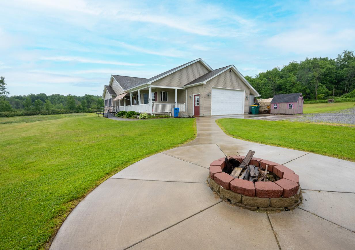 Thoughtfully designed and built by the current family in 2003, this one-owner custom ranch is over 1600sf and sits on nearly 27 beautiful acres, offering comfort, functionality, and room to roam. Enjoy true first-floor living with 3 bedrooms and 2 full baths. The eat-in kitchen features custom hickory cabinets, a large pantry, and tray ceiling, providing a warm gathering space for everyday meals. All appliances included. You are welcomed to the primary suite by french doors, a walk in closet, tray ceiling and a spacious bathroom. Step into the next bedroom with cherry floors that add a touch of elegance, while wall-to-wall carpet and tile throughout the rest of the home keep things cozy. A first-floor laundry is such a treat with the washer and dryer included. Larger family? Need additional space? Check out the dry, expansive basement ready to be finished into anything you can think of. Outside enjoy the spacious covered front porch, perfect for morning coffee, and a private back patio with awning for shaded summer relaxation. You won’t believe the bird and wildlife watching experience. As the sun sets, gather around the outdoor fire pit to unwind under the stars. You’ll enjoy healthy, fresh air year-round with a heat recovery system that cleans and circulates the air. A new furnace (2022), a whole-house generator that also powers the pole barn, and an alarm system for the well and septic add peace of mind. Perfect for hobbyists and outdoor enthusiasts, the property features a 24x32 pole barn with 220 electric, dual overhead doors, a car lift, air compressor, and negotiable tractor with snow blowing and mowing attachments. Wooded trails are perfect for RTV exploration and hiking. Your pups will love it here too, with plenty of land to explore, a fenced outdoor kennel with a cozy dog house for sunny naps, and a dog wash area in the garage to rinse off muddy paws after a day outside. Whether you’re looking to homestead, hunt, RTV or simply enjoy peaceful sunsets over your acreage, this lovingly maintained property is ready to welcome you home.