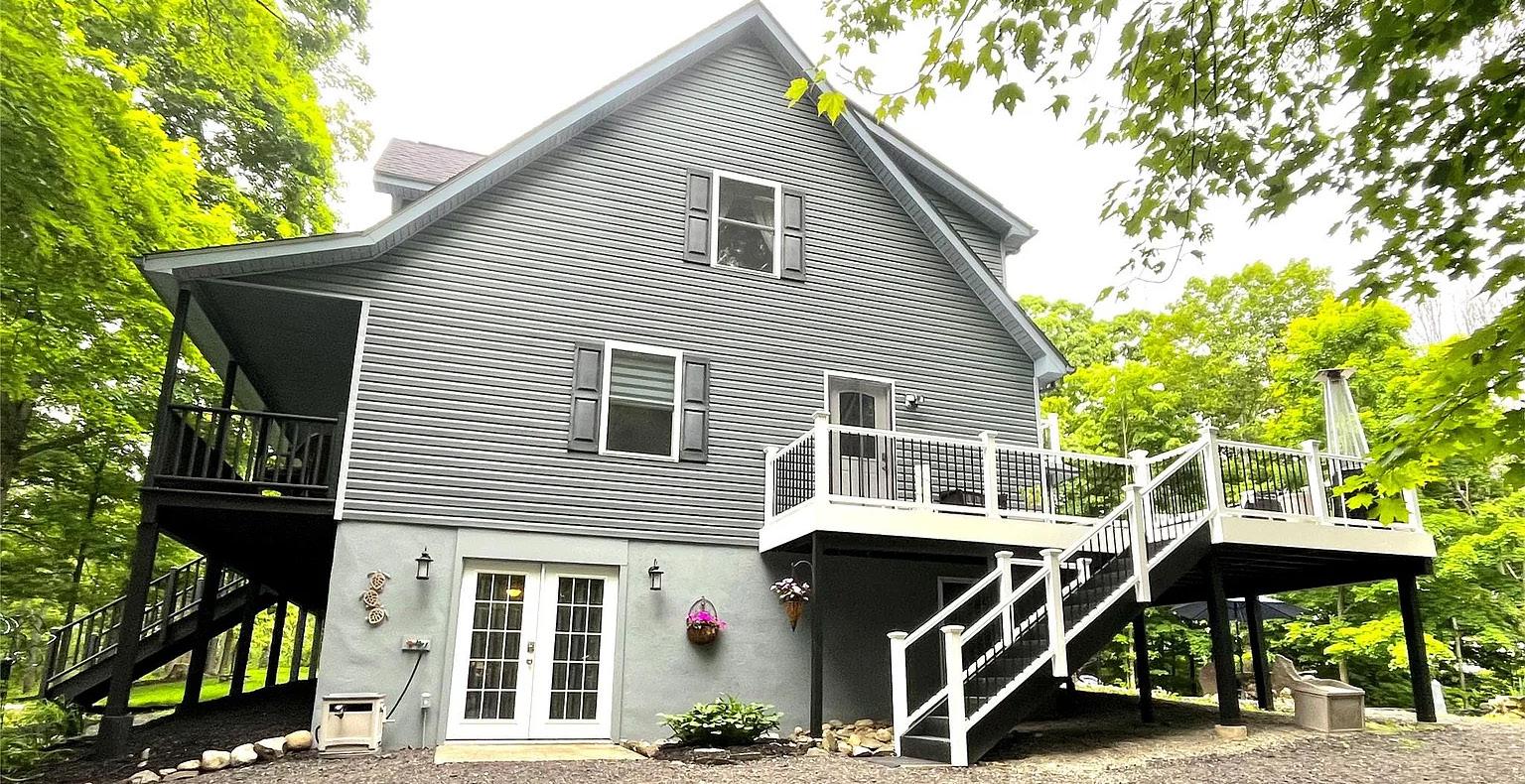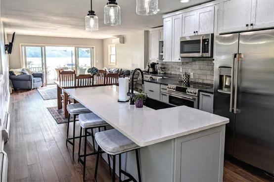 3 BEDS • 2 BATHS • 1,376 SQFT • $695,000 Dreaming of beautiful sunsets on Owasco Lake? Here’s your chance! This gorgeous home in Indian Cove would be a great vacation spot or year around home. Upon entering you’ll have unobstructed views of the lake via the open concept living/ dining area. Through the expansive sliding patio doors you’ll find a newer large trex deck to entertain while taking in the views or swimming off your dock! Once you are done enjoying lake life you’ll have time to appreciate the brand new kitchen featuring quartz countertops and professional grade stainless appliances. A completely remodeled bathroom/laundry area and a bedroom round out the first floor. Upstairs you’ll find a primary bedroom and bathroom, with a balcony to watch sunsets or have your morning coffee! There is also an additional bedroom, as well as an office/flex space. Sitting behind the home is a two car garage with plenty of attic space for storage. The home is kept comfortable year round by energy efficient heat pumps, and a newly installed backup generator guarantees you’ll never be without power. High speed internet is also available making this a great place to work from home. New septic system being installed in the next few weeks. Don’t miss your opportunity to relax and enjoy lake life, schedule a showing today!