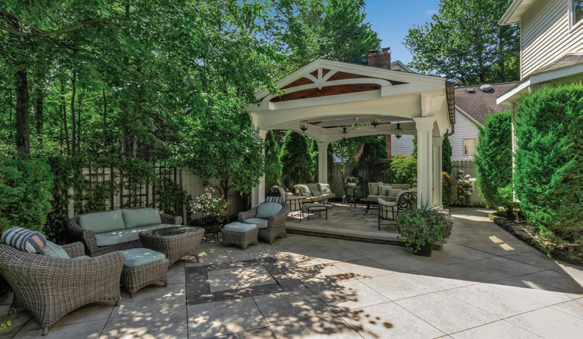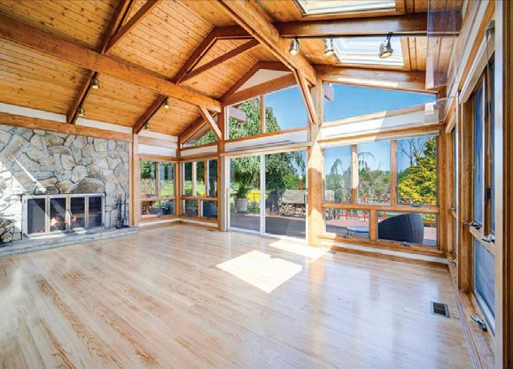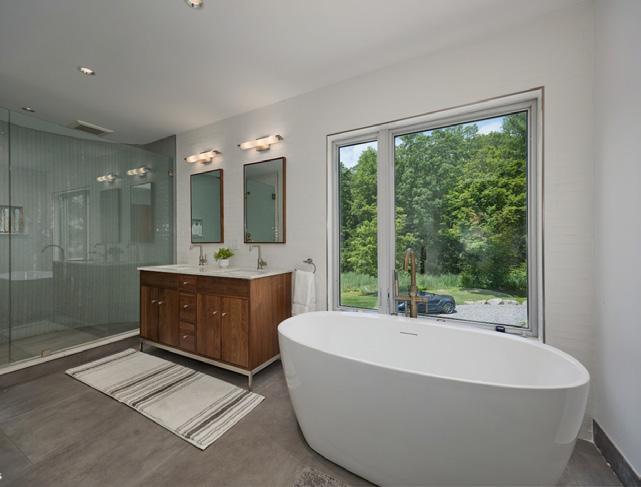 A porte-cochère and formal entry open to soaring ceilings, a wood-burning fireplace, and walls of glass that bring the outdoors in. Designed for entertaining or quiet reflection, the open living spaces flow effortlessly into 3,000 sq ft of bluestone patios wrapping the south, east, and west—ideal for dining, lounging, and relaxing by the pool or fire pit.