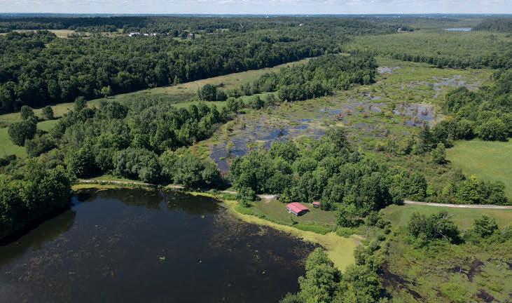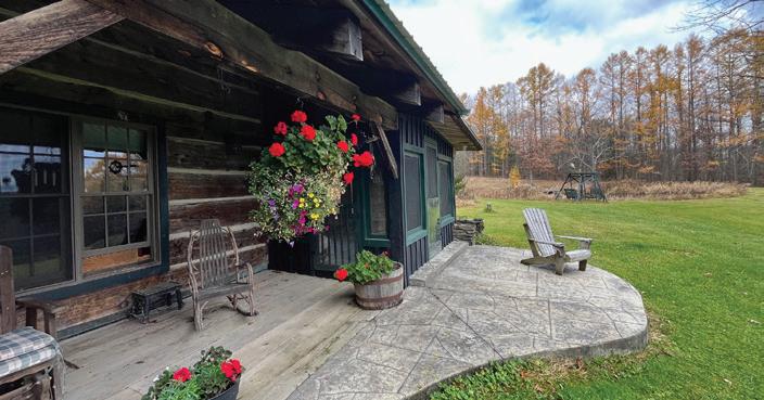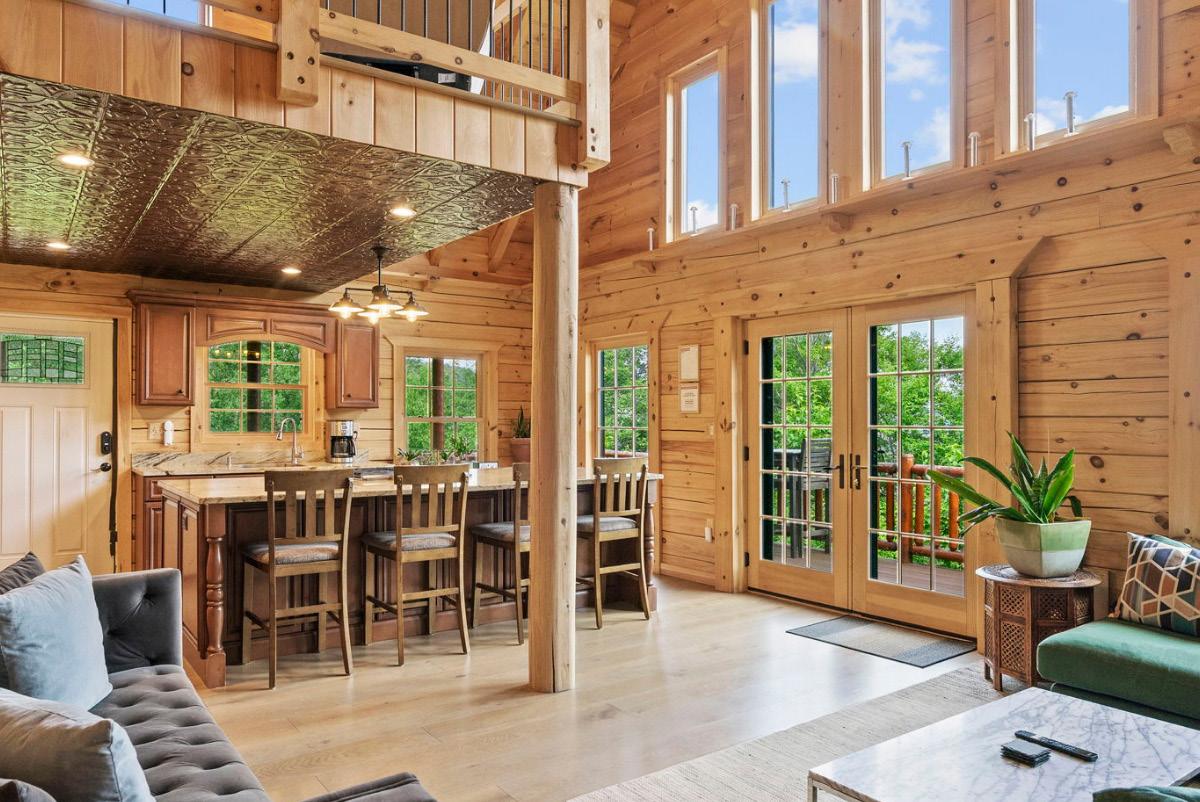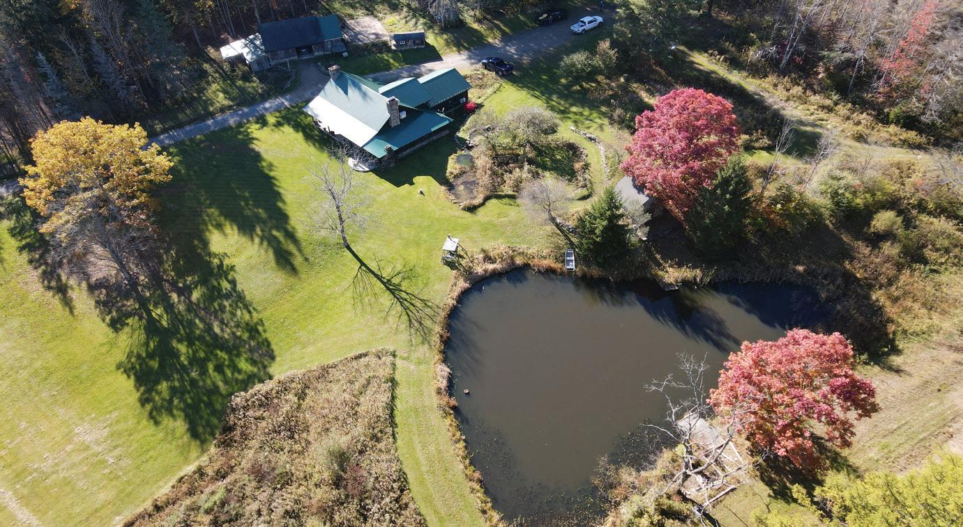 Escape to the tranquility and privacy of 103+/- acres of unspoiled nature, where towering trees, serene ponds and abundant wildlife surround this charming custom log cabin retreat. Perfect for those who cherish the outdoors, this secluded oasis offers the ultimate in peace and hill-top privacy while providing modern comforts in a rustic setting. Tucked away in the woods, the two-story entryway welcomes you with an art gallery leading into a spacious great room. Rustic beams, a creek stone fireplace and an open staircase with custom steel railings set the tone for this warm and inviting home. A cozy loft bedroom with lighted bookcases overlooks the space, offering a charming perch to take in the natural beauty outside. This space can also be used as an office, reading room or quiet space to relax. The original log cabin features a bedroom with its own fireplace, a full kitchen, a dining room and a full bath-all designed to blend seamlessly with the natural surroundings. The 640 sq. ft. primary suite addition (2018) provides a vaulted ceiling, heated floors, a coffee bar with a wine fridge and a spalike en-suite bath with a convenient laundry area. The full basement, complete with heated floors, includes a family room with a wood stove, a canning pantry, an additional bathroom and a large room currently used as a gym. A one-of-a-kind underground tunnel connects the basement to the two-story garage, adding both convenience and a touch of adventure. Step outside and immerse yourself in nature. A screened-in porch overlooks the ponds, offering a serene spot to enjoy morning coffee or evening sunsets while listening to the sounds of birds and rustling leaves. The covered front porch provides another perfect vantage point for watching deer, wild turkeys and other native wildlife roam freely across the land. For those who love to explore, the property boasts lush forests filled with Ash, Maple, White Oak, Red Oak, Beech, and Larch trees, making it ideal for hiking, birdwatching and foraging. The four picturesque ponds attract a variety of wildlife and create a peaceful environment for reflection. Whether you dream of living off the land, enjoying the sights and sounds of untouched wilderness, or simply having a peaceful retreat away from it all, this property is a rare find. Come experience the beauty and serenity of this extraordinary natural sanctuary.