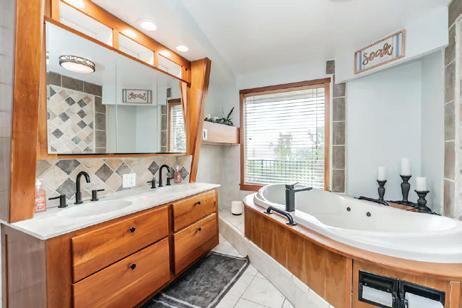 The home includes a main-floor bedroom and full bath, plus a second-floor primary suite with sweeping views and private deck. Four additional bedrooms (or flexible spaces), a full bath, laundry, and a large bonus room—perfect as a gym, studio, or office—complete the upper level.