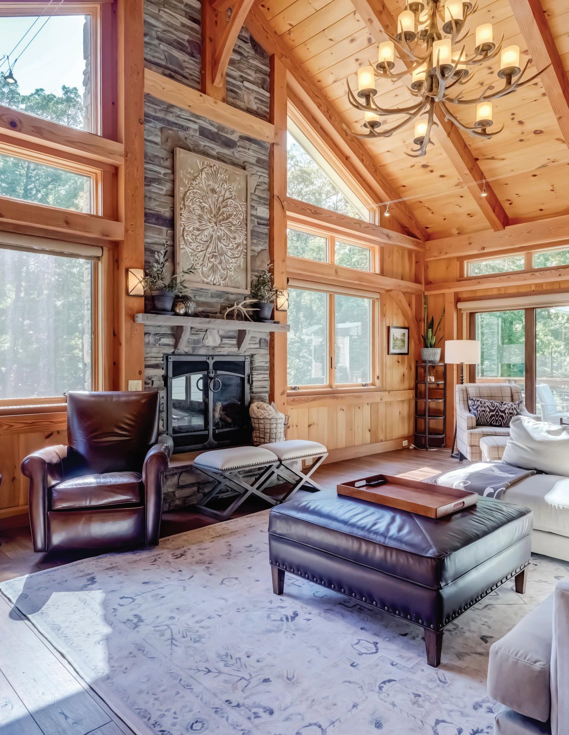 This magnificent 3,707 sq ft home seamlessly blends modern luxury with rustic charm. Offering 4 bedrooms and 4 full and 2 half bathrooms, the residence provides an expansive layout perfect for both relaxation and entertaining. The primary suite, located on the main level, is a serene sanctuary, featuring large windows that offer breathtaking views of the surrounding landscape. The luxury en-suite bathroom includes a large shower, his-and-her sinks, and two walk-in closets, ensuring both comfort and convenience. Beautiful hardwood floors flow throughout the home, complementing the light and airy ambiance created by the large windows. The spacious kitchen boasts granite counter tops and high-end finishes, while the living areas is centered around a fireplace, perfect for chilly evenings. For those seeking additional space or privacy, the property includes two guest pods, ideal for visitors or extended family. Outside, stone walkways wind through lush gardens, while hiking trails invite you to explore the natural beauty of the land. Additional amenities include a gym, steam room, a private studio, and a dedicated office space, providing everything you need for work, creativity, and fitness. The large back deck offers the perfect spot to enjoy the peaceful surroundings, whether you’re entertaining guests or simply relaxing with a cup of coffee. For added peace of mind, the property is gated and equipped with a state-of-the-art security system, ensuring privacy and safety. This exceptional property offers an unparalleled lifestyle with the perfect balance of modern living and nature’s tranquility. Don’t miss the opportunity to make this luxurious retreat your own.