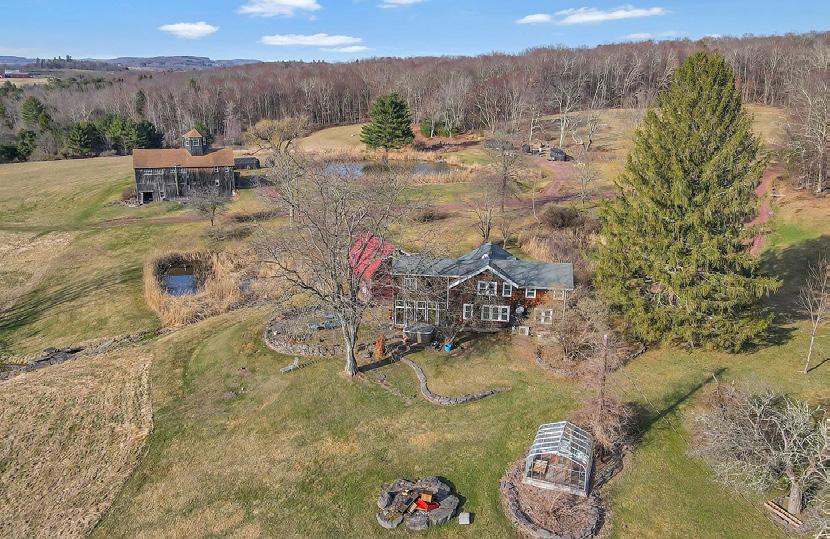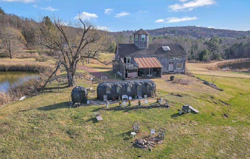 Welcome to The Shire in Kenoza Lake! Once the home and studio space of an internationally renowned pop artist and print maker, the 92+ acre property with its three ponds, vineyard, & acres of rolling hills begs to be explored. The original farmhouse was built in 1880 and has been lovingly maintained & updated. Enter through the foyer to discover an open chef’s kitchen with a top-of-the-line 7 burner stove with convection oven, modern stainless steel appliances, and wine refrigerator—a dream for entertaining. The formal dining room overlooking the cozy sunken living area with its wood-burning fireplace and expansive windows add a touch of elegance to the home. Upstairs you’ll find the large primary suite, an inner sanctuary for rest & relaxation, complete with a soaking tub and walk-in shower. Two additional bedrooms and a full bathroom on the second floor offer plenty of room for family and guests. An additional room on the first floor offers the space for an office or another bedroom; a laundry room, pantry, and half bath add to the home’s functionality. Enjoy sunsets from the rock-paved sitting area outside the farmhouse overlooking one of the ponds, the greenhouse, and vineyard. The larger barn’s main area boasts impressively high ceilings, open spaces, and a flood of natural light from the skylight, the perfect space for continued use as an artist studio or an amazing space for entertaining. This barn also has an upstairs sitting area and outdoor deck that offers possibilities of finishing for an additional living or entertaining space; climb the ladder to the crow’s nest to discover stunning 360-degree views of the property and surrounding vistas. A smaller barn currently offers additional storage, but has potential to be finished for yet another living or entertaining space; it could be the perfect spot for a one’s yoga practice. Three Estonian Iglu tiny homes (each can comfortably sleep up to 4 people) circle one of the property’s ponds; they are already in-demand AirBnB/STR accommodations. Two wood-fired Iglu saunas and a hot tub offer a relaxing retreat enjoyable year-round. The expansive Shire property offers a world of possibilities from transforming into an event space or wedding venue, a private compound with space for everyone, or multi-faceted horse and agricultural property. A hop, skip, and jump away from Kenoza Hall. Nearby Jeffersonville offers restaurants, shopping, and other conveniences. Approximately 2 hours to NYC. Experience the beauty and history of The Shire—a rare gem that blends artistic legacy with natural splendor. Schedule a private tour today; you’re sure to fall in love.