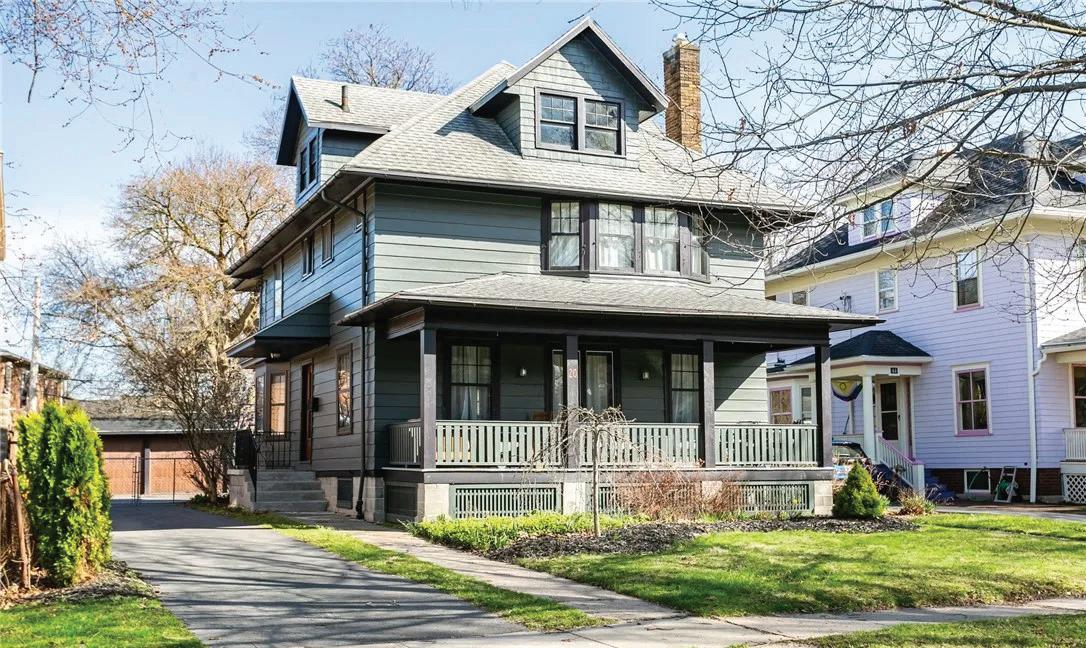 4 BEDS • 3.5 BATHS • 2,694 SQFT • $379,000 Craftsman enthusiast draw near! This picture perfect side entry four square has all the charm and detail of yesterday with modern thoughtful updates throughout! Enjoy the light filled foyer that leads to the well sized living room which boast access to the enclosed outdoor porch or choose to enter the dining room with picture molding that enters into a kitchen that has been updated but feels like home with stainless steel appliances, concrete countertops, an apron sink and a huge island for entertaining, don’t forget the sunporch or the powder room tucked under the stairs! As you walk up the light filled stair case to the primary suite with a beautiful modern bathroom, fireplace and a wall of windows. Two additional well sized bedrooms, one has access to the sleeping porch, open to the original craftsman tiled bathroom with it’s recently reglazed tub and updated fixtures. Heated floors in the primary bathroom! The third floor has finished space with plenty of built in storage and a full bath. A sitting deck awaits on the back of the house along with green space and a 2 car garage. This one is a jewel in the crown of Crosman Terrace.