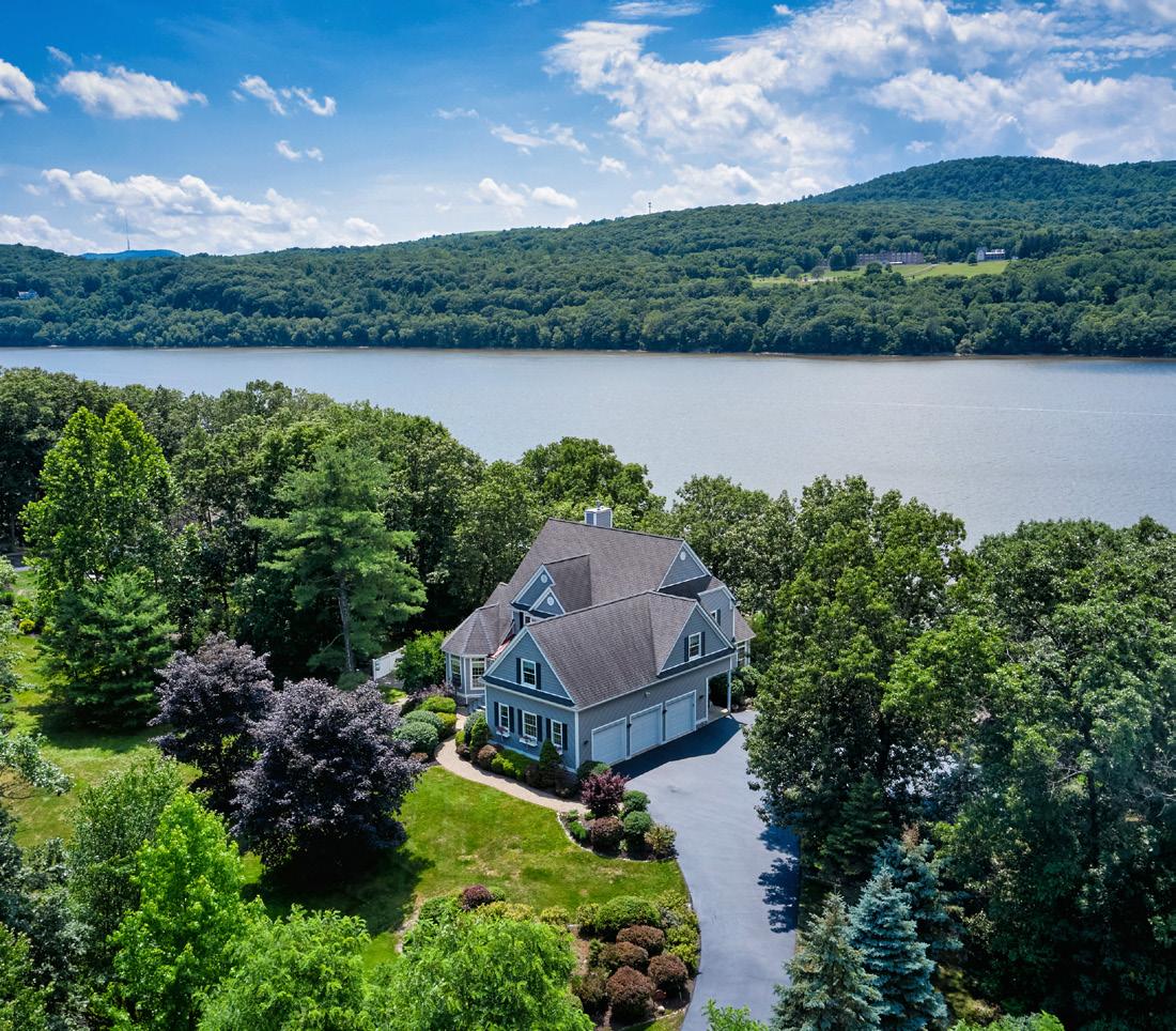 Presenting an exquisite contemporary residence on Balmville’s prestigious River Road, offering unparalleled views of the Hudson River, the majestic mountains, and the iconic Newburgh-Beacon Bridge. Fully re-imagined in 2022, this 3,663 square foot home blends refined design with effortless functionality. This property features four bedrooms and two full and two half bathrooms. The heart of the home is the expansive living room, complete with a gas fireplace, creating a warm and inviting ambiance. Just beyond is the chef’s kitchen, featuring quartz counter tops, premium stainless steel appliances, and a central island that effortlessly connects the family room and dining area, creating an open, cohesive space ideal for everyday living and effortless entertaining. The primary suite is a true escape, complete with a spa-like bath, custom walk-in closet, and a private deck designed for taking in breathtaking sunrises. Each additional bedroom also enjoys access to its own deck, offering a seamless connection to the outdoors and unmatched vistas at every turn. The main bathroom features a quartz-topped double vanity, tub, and shower. For added convenience, a full-sized washer and dryer are located on the bedroom level. Screened-in decks on the main level invite three-season lounging and dining, while the finished lower-level bonus space—with private entrance and 1/2 bath—offers ideal flexibility for guests, a studio, or home office. The two-car garage is outfitted with built-in floor-to-ceiling storage and a worktop, and a professionally finished floor, adding to everyday ease. From its thoughtful interior upgrades to its show-stopping location, this exceptional property offers a rare opportunity to live luxuriously within one of the Hudson Valley’s most treasured landscapes. Short distance to the Powelton Country Club, I-84, I-87, 9W, Beacon’s Metro North Station, Stewart International Airport, and all that the Hudson Valley has to offer.