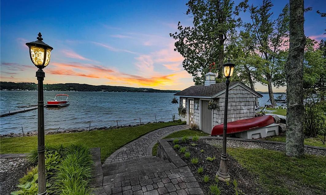 5 BED | 3 FULL, 3 HALF BATHS | 3,927 SQFT | 2.86 ACRES | $1,200,000. Welcome to 1015 Lochland Drive on Seneca Lake! This well-crafted, historic colonial was constructed in the 1930’s and sits on nearly 3 acres of prime real estate minutes from downtown Geneva and Hobart & William Smith College. Driving up the paved driveway you can’t help but notice the multi-colored slate roof and stone/stucco sided house with artistic archways on the covered porch. You’ll feel the history and charm as you enter the formal entrance and are greeted by a wide hallway, gleaming hardwood floors, and an oversized staircase. There is no lack of space to host or entertain between the formal dining room and the vast space in the living room, complete with a library/sitting room with windows facing the water. Upstairs there are 5 bedrooms, 3 of which are en-suites. The front bedroom has a wall of windows with stunning views of the back yard and Seneca Lake. The basement is another great space to entertain with a finished great room and an attached room with a wet bar. The oversized back yard is dotted with mature trees & landscaping, a secluded patio with a vine covered arbor, and multiple places to sit and enjoy the views of Seneca Lake. Here’s your opportunity to own a timeless piece of real estate and enjoy the Finger Lakes!