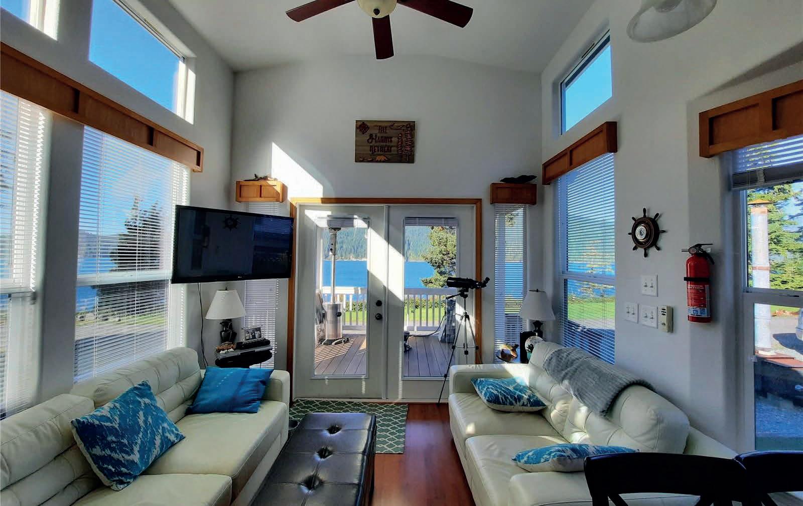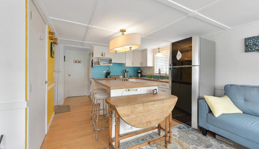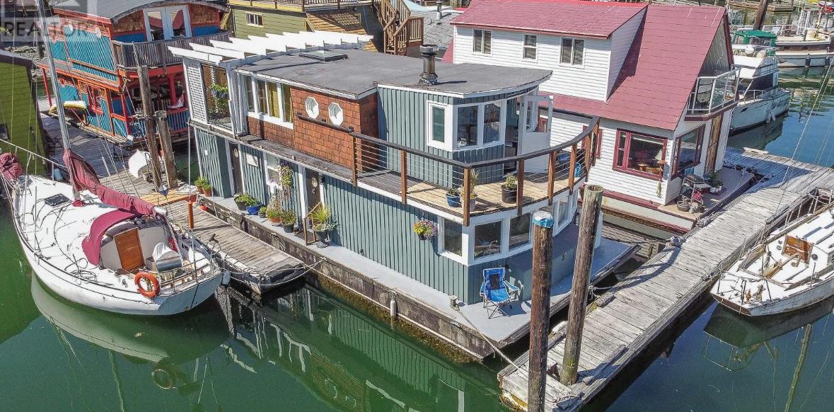 IN COWICHAN BAY. Discover the ideal weekend retreat or embrace year-round waterfront living in this quaint and cozy float home. Enjoy waking up to stunning panoramic ocean and mountain views from your bed or sip on your coffee in the open-concept main level, featuring a ‘’Home Chef’s’’ kitchen with island and a walk-in pantry. This home has been tastefully updated, including a refreshed bathroom with a new shower, bamboo vanity and sink. Durable laminate flooring flows throughout, offering both style and practicality. Upstairs, you’ll find two cozy bedrooms and a private sunroom that opens onto a deck and your own slice of outdoor serenity. New bilge pumps, dedicated parking, 220 power. ALL furnishings, linen, tableware and appliances INCLUDED!!! —just move in and start living the float home lifestyle. You’re just steps away from local shops, restaurants, and arguably the best bakery in the valley. Don’t miss your chance to be part of this amazing seaside community! Experience the beauty of BC and West Coast living at an affordable price without settling for ordinary condo life. 5 1765 Cowichan