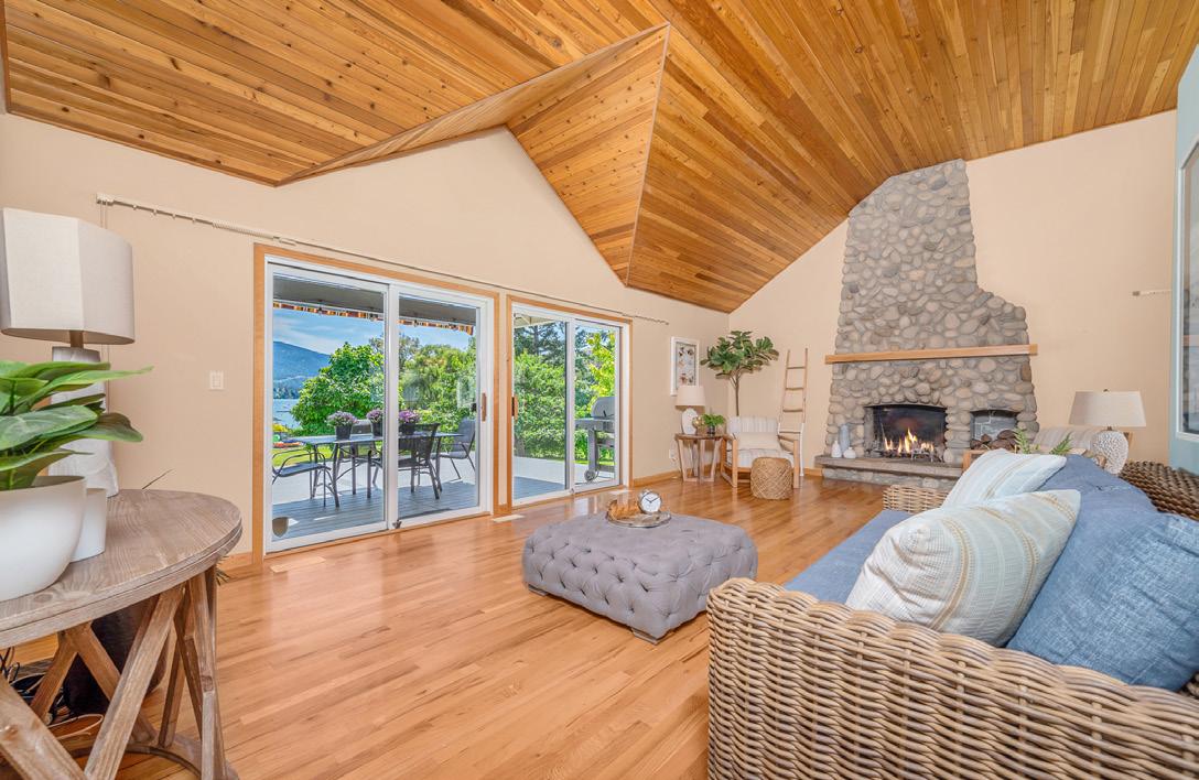 3 BEDS • 2 BATHS • 2,411 SQFT • C$1,249,900 After spending a hot sun-filled day on the lake, boating, paddle boarding, or swimming in the crystal clear water, retreat to your cool shaded yard and continue to enjoy the outdoors playing horseshoes, corn hole, or just sit back and relax with a book and a cold beverage at this one of a kind log home with lake access. Boasting a grand living room with timber vaults and floor to ceiling fireplace, skylights, separate dining room, charming kitchen showcasing Heartland appliances including a 6 burner gas stove, and a primary suite with soaker tub, shower and double sinks all on the main floor. Up the stunning curved Maple staircase are two bedrooms and a 3 piece bathroom. Enjoy year round outdoor amenities such as a fire pit, hot tub, BBQ area and dining space. Adjacent to Gordon Bay Provincial Park, beach, boat ramp and golf course all nearby. The private, level site includes two legal titles with trail access to the lakeside lawn, beach, your own boat slip and shared wharf. Ample parking, plenty of room for family/friend’s campers or tents. Call NOW to view this enchanting property and enjoy the stunning fall season on the lake.