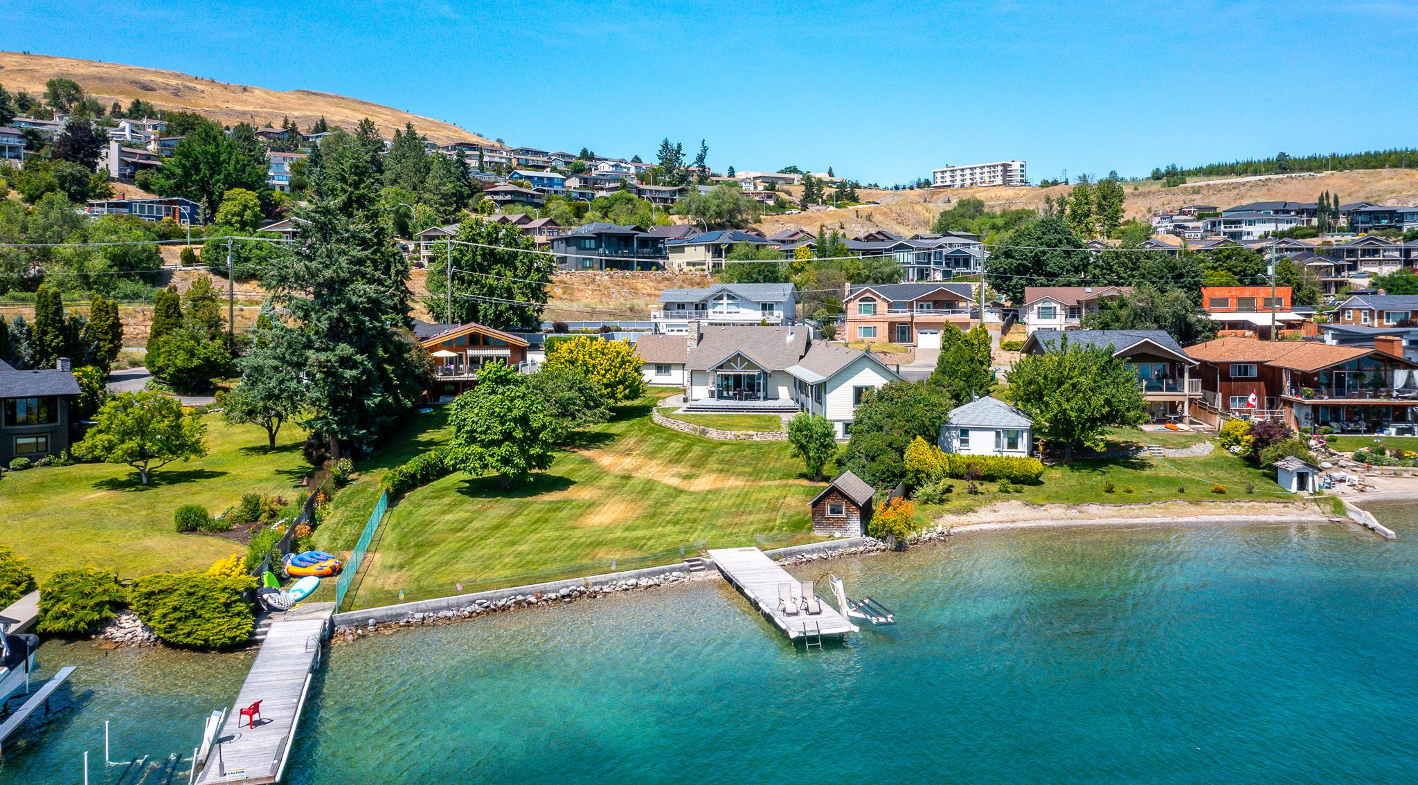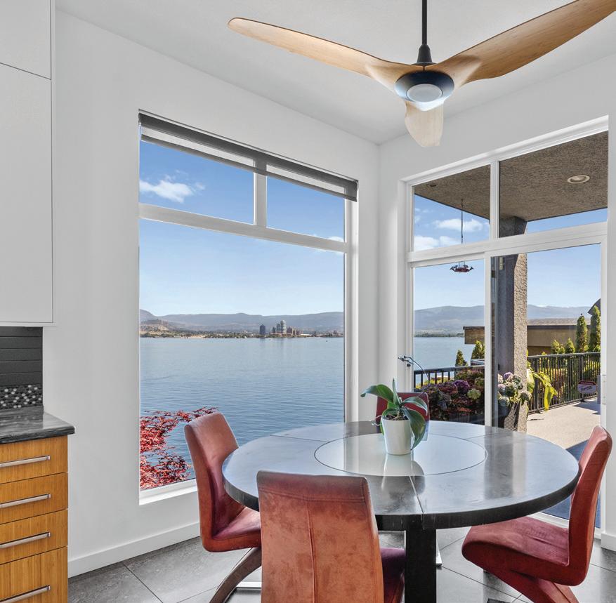 This thoughtfully updated walk-out lakefront retreat offers over 100 ft. of private waterfront in the exclusive gated community of Sailview Bay. Set along the cliffs of Westside Road, the home captures sweeping views of Okanagan Lake and the downtown skyline, offering a peaceful setting by day and sparkling city lights at night.