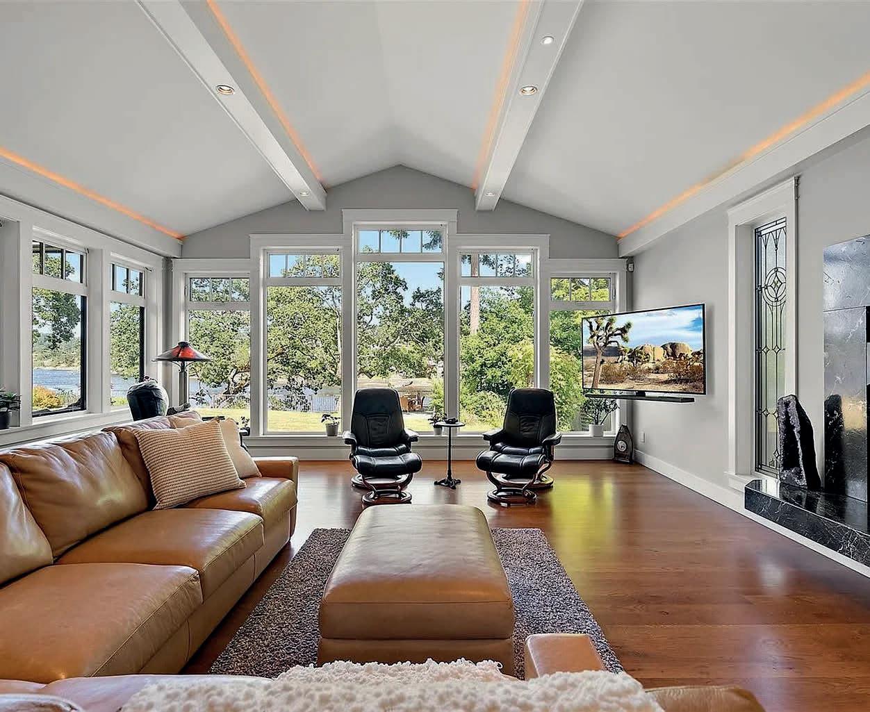 Inside, soaring 20-foot ceilings create a dramatic sense of space, while sophisticated smart home technology and energy-efficient systems ensure comfort and convenience with sustainability in mind. Every detail is thoughtfully curated to reflect both form and function—an exquisite coastal sanctuary in one of Oak Bay’s most coveted locations.