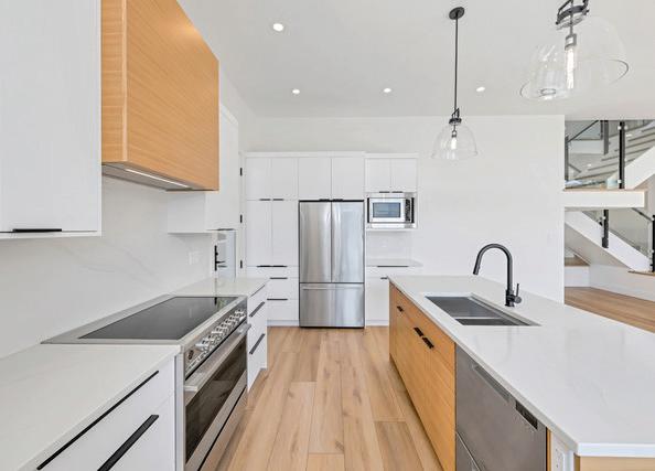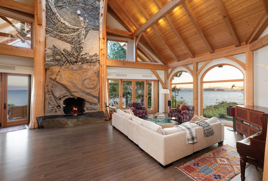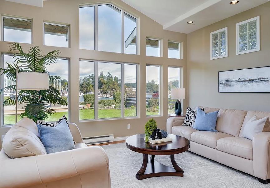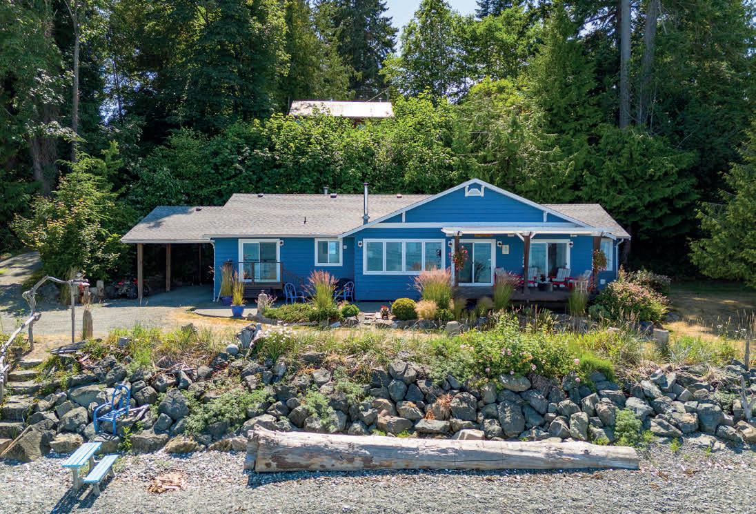 This stunning newly built walk-on waterfront home is located on the peaceful Ships Point Peninsula. Set on 0.57 acre with 90’ of ocean frontage, this home offers modern elegance with white oak floors, Thermador/ Wolf appliances and custom cabinetry. The open-concept living area features a striking Napoleon fireplace, but it’s the panoramic ocean views—framed by expansive wallto-wall windows—that will truly take your breath away. Step out to a spacious deck, perfect for al fresco dining or simply soaking in the ever-changing views of herons and eagles with Denman Island in the distance.
