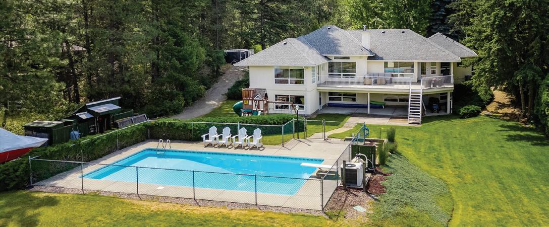 4510-4520 Stewart Rd E | 4 Bed, 5 Bath, 4,693 SF Modern farmhouse with wraparound porch, pool, and attached suite on 12 peaceful acres. Custom finishes throughout, gourmet kitchen, and vaulted great room with wood-burning fireplace. Also includes 2nd home, large workshop, and a small orchard. Prime South East Kelowna location near hiking and riding trails. MLS® 10345753