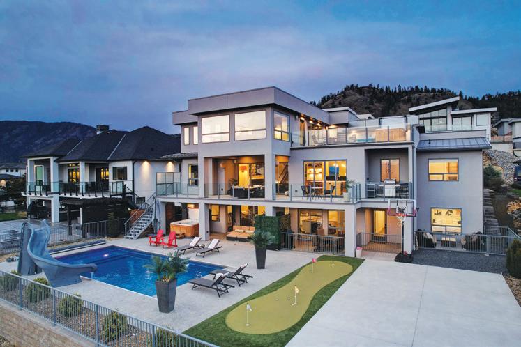 Located in the prestigious Vineyard Estates, this modern home captures endless panoramic views of Okanagan Lake and Mission Hill. Thoughtfully designed for entertaining, the open-concept layout features a chef’s kitchen with professional appliances, a butler’s pantry, and seamless access to a spacious lakeview patio. The upper-level primary retreat offers a private patio with a hot tub, spa-inspired ensuite, and stunning views. The lower level is designed for fun with a home theatre, wine room, and large rec space. Step outside to a private outdoor oasis featuring a pool, hot tub, putting green, sport court, and lowmaintenance landscaping. Complete with a triple garage, boat bay, EV charger, and security system. MLS® 10342829