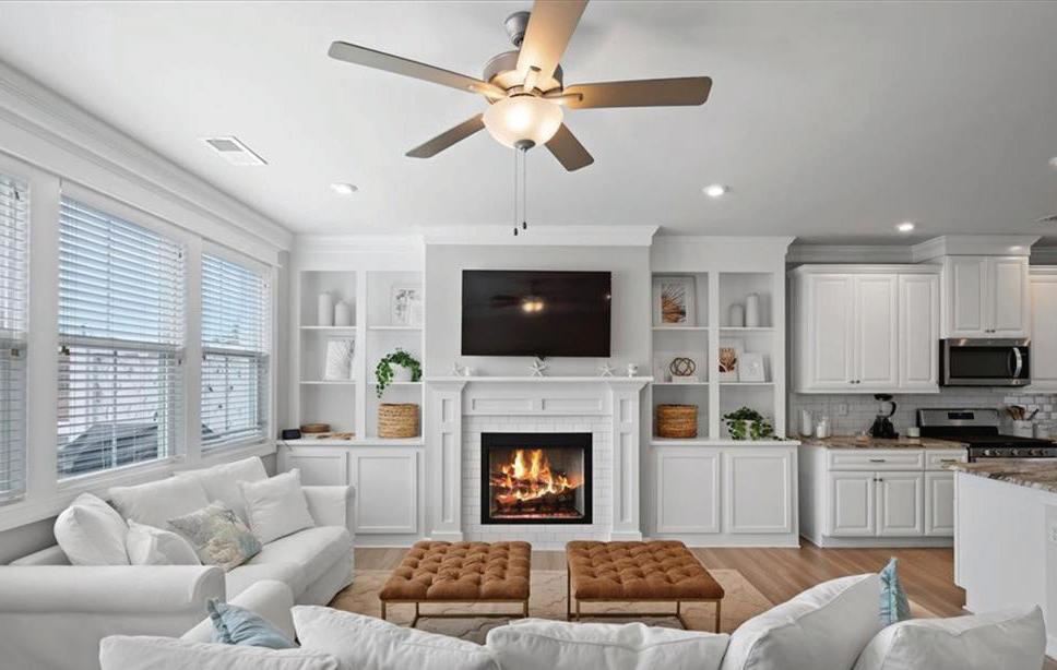 3 BEDS • 2 BATHS • 2,404 SQFT • $649,000 Charming waterfront cottage on Barnes Creek. Enjoy stunning creek and Bay views from this updated classic cottage with a private dock, and easy access for kayaking or boating to sand beaches and prime fishing spots. The outdoor living spaces include a large deck, screened porch, fire pit, and flat lawn perfect for entertaining by the water. Inside, the home blends classic charm with modern comforts. The waterside room boasts vaulted ceilings, post-and-beam construction, a cozy fireplace, and serene water views. Wide plank wood floors flow throughout, and spacious kitchen features a breakfast area, quartz counters and stainless appliances. The first floor includes a generous living room, large dining room, two bedrooms, and full bath. Upstairs, the en suite primary bedroom offers privacy and space with its own bath. The home has a new HVAC system, for heating and cooling, and has been painted throughout. Located just a short drive from shops, dining, a hospital, a movie theater, a country club and more! A perfect waterfront home or a potential short-term rental, the possibilities are endless.