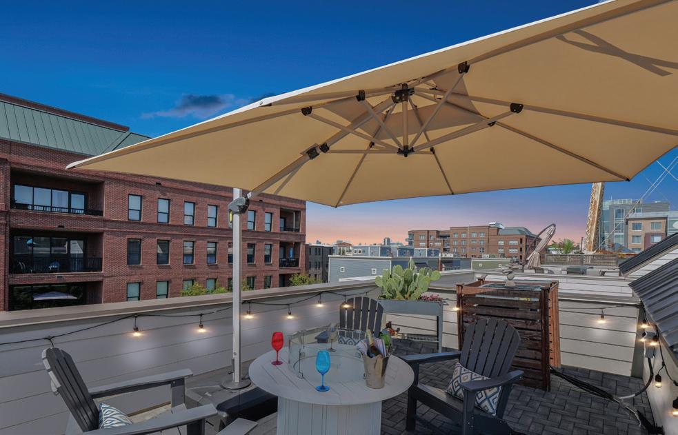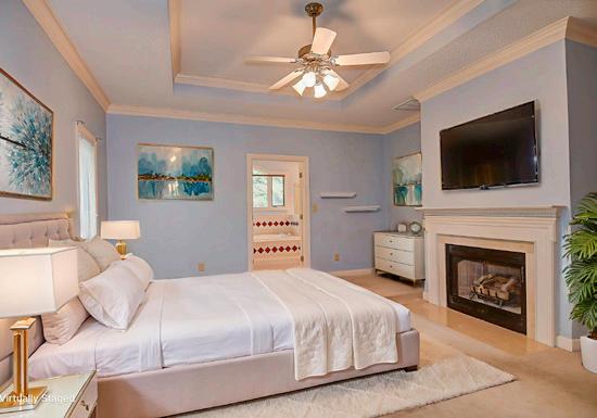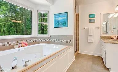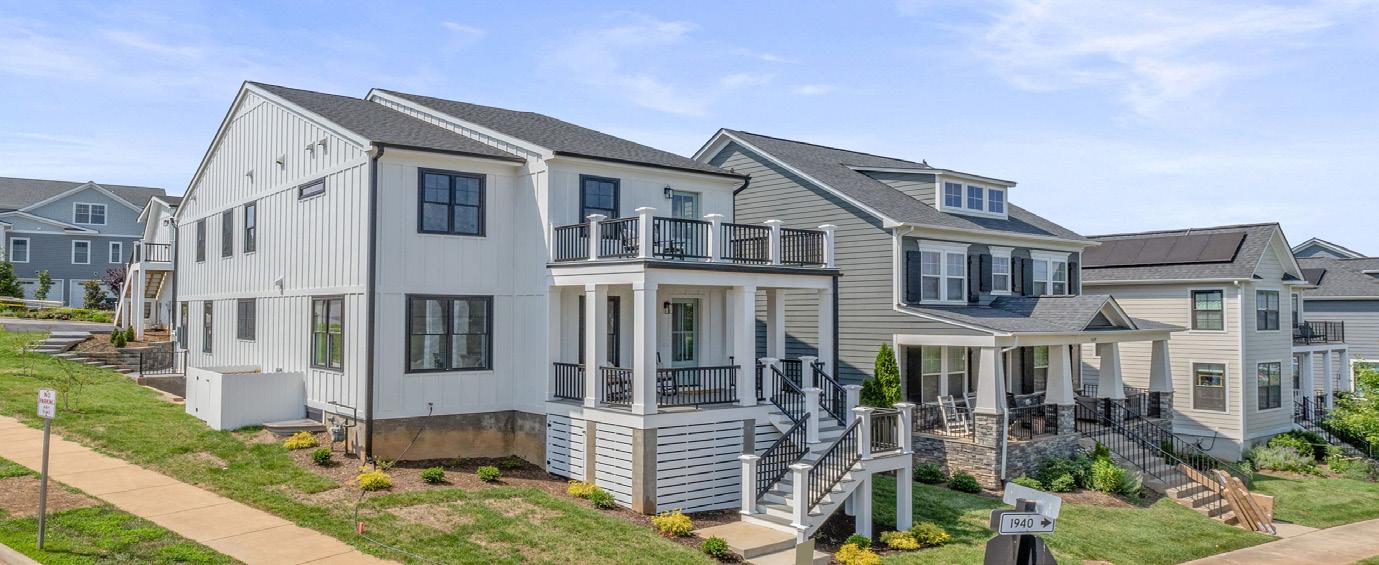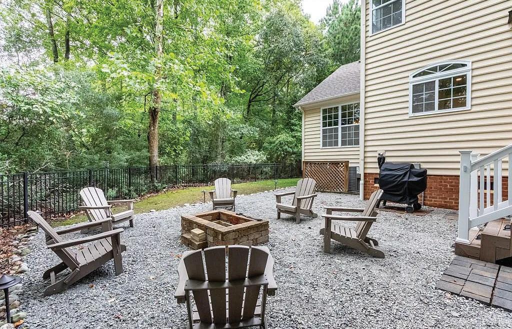 from the 10x16 primary bedroom deck of this exquisite new construction home. Gibson Homes presents this just completed home with a cool color palate, stunning finishes and sited on a corner lot, the generous space throughout lives large. 10 ft ceilings on the 1st floor, true finished in place hardwood floors, natural gas fireplace with shiplap surround, great room coffered ceiling, Viking appliances in a chef’s dream kitchen complete with a porcelain farm sink, prep sink and pot filler, custom cubbies, custom builtins, solid core doors, wood closet shelving, custom tile work....you may have found your forever home. Along with the primary bedroom, on the 2nd floor find an en-suite bedroom and a jack and jill bedroom ensemble. A large 2nd floor laundry room completes the space. Wonderful entertaining area on the rear oversized stamped concrete patio! The detached 2 car garage with finished carriage house above can be rented or can be a perfect au pair suite, mother in-law apartment or private office.