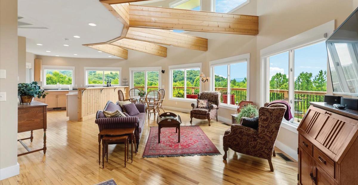 Elevated Riverfront Living - Contemporary Luxury on the Shenandoah River Nestled on 4.43 acres with over 680 feet of direct Shenandoah River frontage and panoramic views of the surrounding mountains & Shenandoah National Park, 127 NW Turn is a rare blend of natural beauty and refined comfort. This thoughtfully updated cedar contemporary offers peace, privacy, and timeless scenery only the Shenandoah can provide—just steps from your door. Crafted to embrace its tranquil setting, the home offers over 3,000 square feet of lightfilled space, where vaulted ceilings, exposed beams, and generous windows frame uninterrupted views of the Blue Ridge. The kitchen has been renovated with granite countertops, 2023 stainless steel appliances, and tasteful finishes that honor the home’s organic warmth. The reimagined primary suite is a private retreat, featuring a spa-style bath with oversized walk-in shower, custom barn door, in-suite laundry, and a custom closet system. All bathrooms throughout the