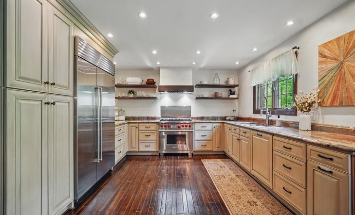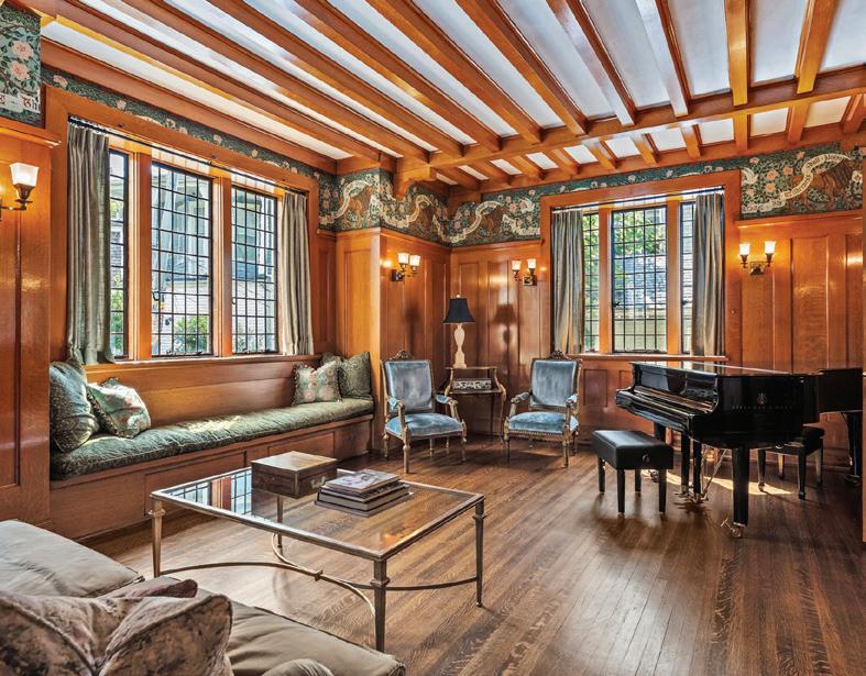 Make your way through the velvet and linen-wrapped dining room and butler’s pantry to a chef’s dream kitchen, complete with a Viking range, Fisher Paykel dish drawer, maple butcher block island, and countless more features. Head to the piano room and enjoy an original hand-painted paper mural and wainscotting.
