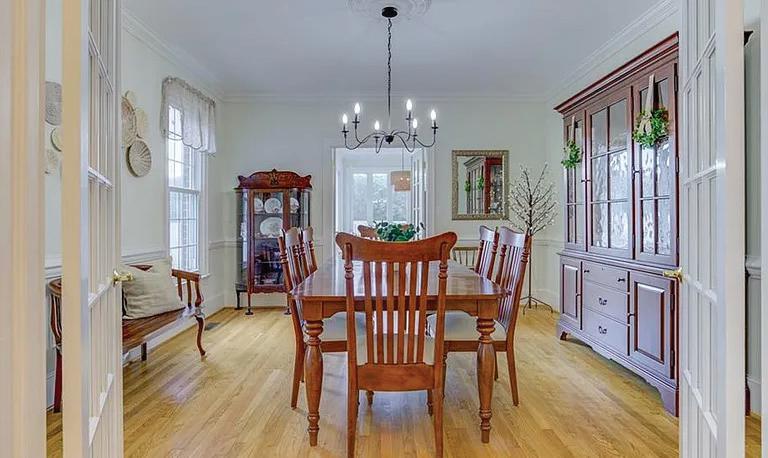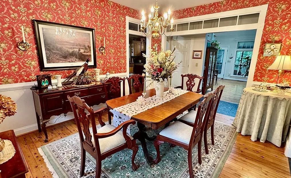 Circa 1931 country estate restored with luxury finishes. Features 5 bedrooms, 4.5 baths, formal living and dining, cathedralceiling great room, chef’s kitchen with quartz, Zline appliances, and breakfast area. Primary suite with spa bath, first-floor ensuite, pavilion, 2-car garage, sheds, and gazebo. Perfect blend of charm, modern comfort, and horse-ready grounds.