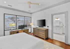 The renovated kitchen shines with modern finishes, ideal for entertaining or family meals. Enjoy stunning creek views and peaceful outdoor living from your backyard. Complete with style, comfort, and a 13ft Boston Whaler boat, this waterfront retreat is a rare opportunity!