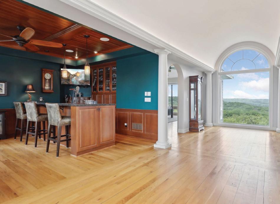 Expansive windows bathe the home in natural light, offering million-dollar views from every room. The gourmet kitchen is a chef’s dream, featuring stainless steel appliances, granite countertops, a massive center island, and an impressive butler’s pantry. Relax in the wet bar room or enjoy the 4-season porch with an indoor grill, a charming brick wood-burning fireplace, and backyard patio access.